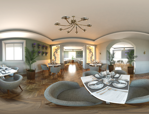 I’d like the space to feel like an elegant Belle Epoque villa, with elegant and simple furniture. My main references are the refined country houses of the early ‘900 owned by the healthy European middle class of that time. I’d like my clients to feel welcomed in an elegant but sober, discreet and delicate dining room, very far from the extreme luxury of the aristocracy of that period. The main colours will be white and pastel tones, please include plants and flowers.