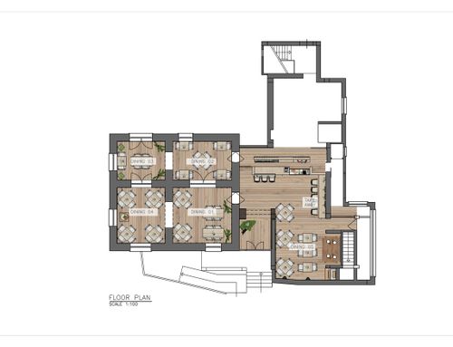 I was also considering separating rooms 4 and 3 from rooms 1 and 2 so that the dining rooms can be more private and intimate. You can help me find a removable solution so that the space can be separate or open when needed. Please give me your best advice!