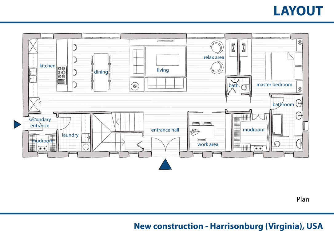 New construction off an existing 26x60 foundation with mountain views off the back (the 60' side).  The main goal is to have a master suite on the right, limited windows on the front, a large kitchen/great room combination (I like galley style kitchens), a laundry, mudroom, and small work area, and stairs to the upstairs and basement, all on the same floor. ....taking full advantage of the views.  The files uploaded are generally where we are headed.  Friends and family entrance should be on the left side of the house, back corner, with a mudroom available when you walk in.