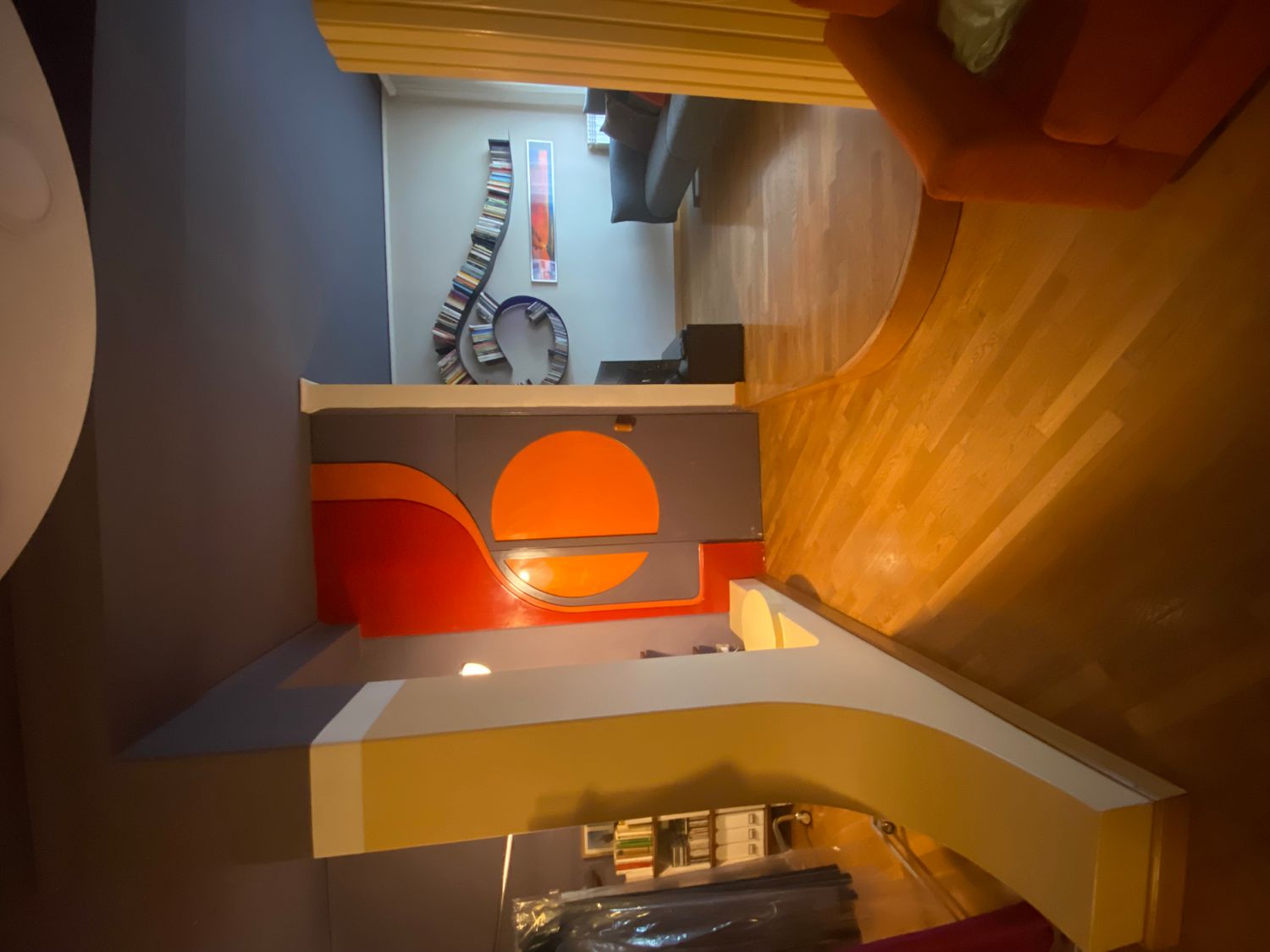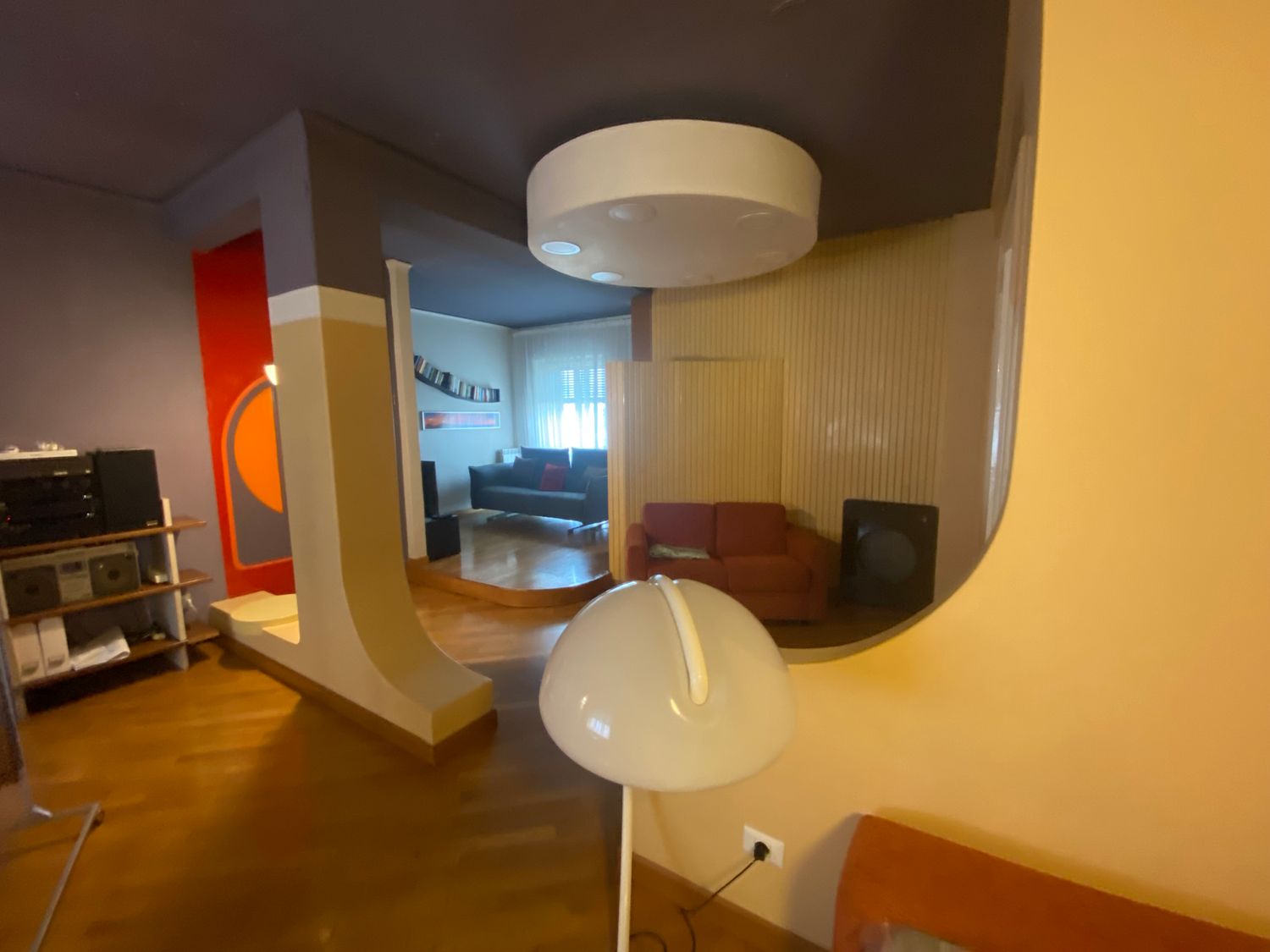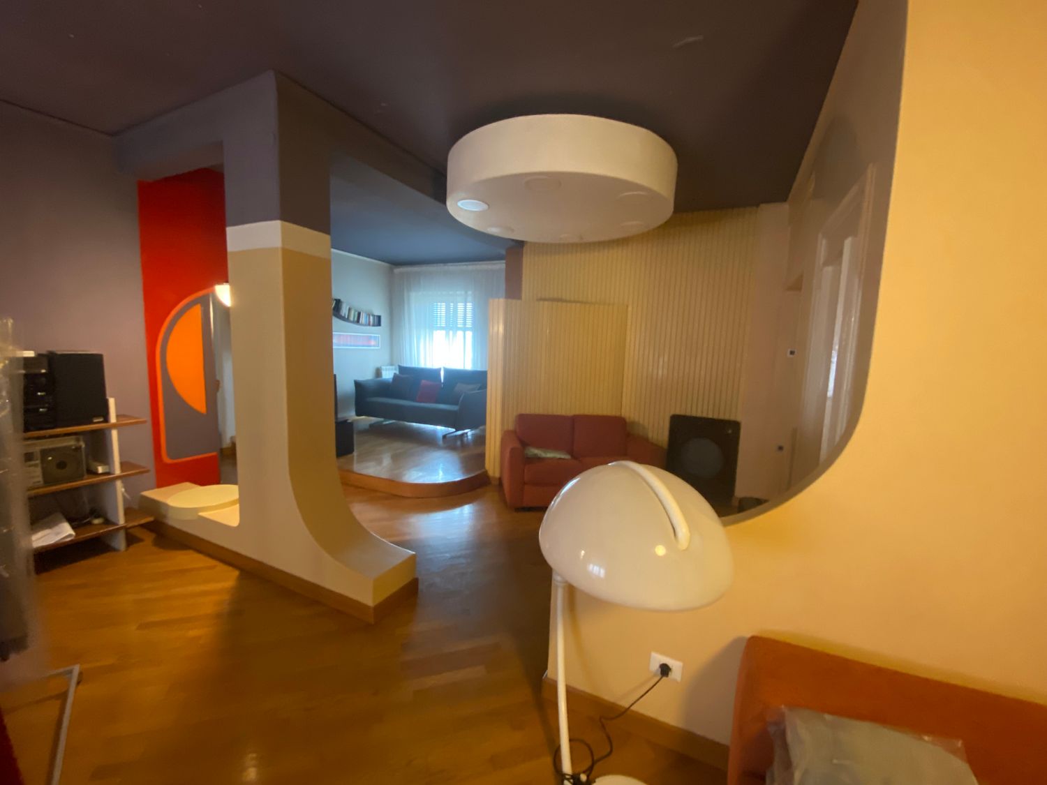 L'appartamento è stato progettato e realizzato nel 1968. Le scelte cromatiche e l'utilizzo di forme, sagome, segni ed elementi di design sempre ispirati alle curve, dopo più di 50 anni restano a mio avviso molto belli. I progetti degli anni 60 ovviamente non tenevano conto delle nuove tendenze e delle attuali necessità; vorrei quindi che il nuovo progetto non si distacchi cromaticamente e stilisticamente da quello attuale, me renda l'appartamento più comodo e fruibile.