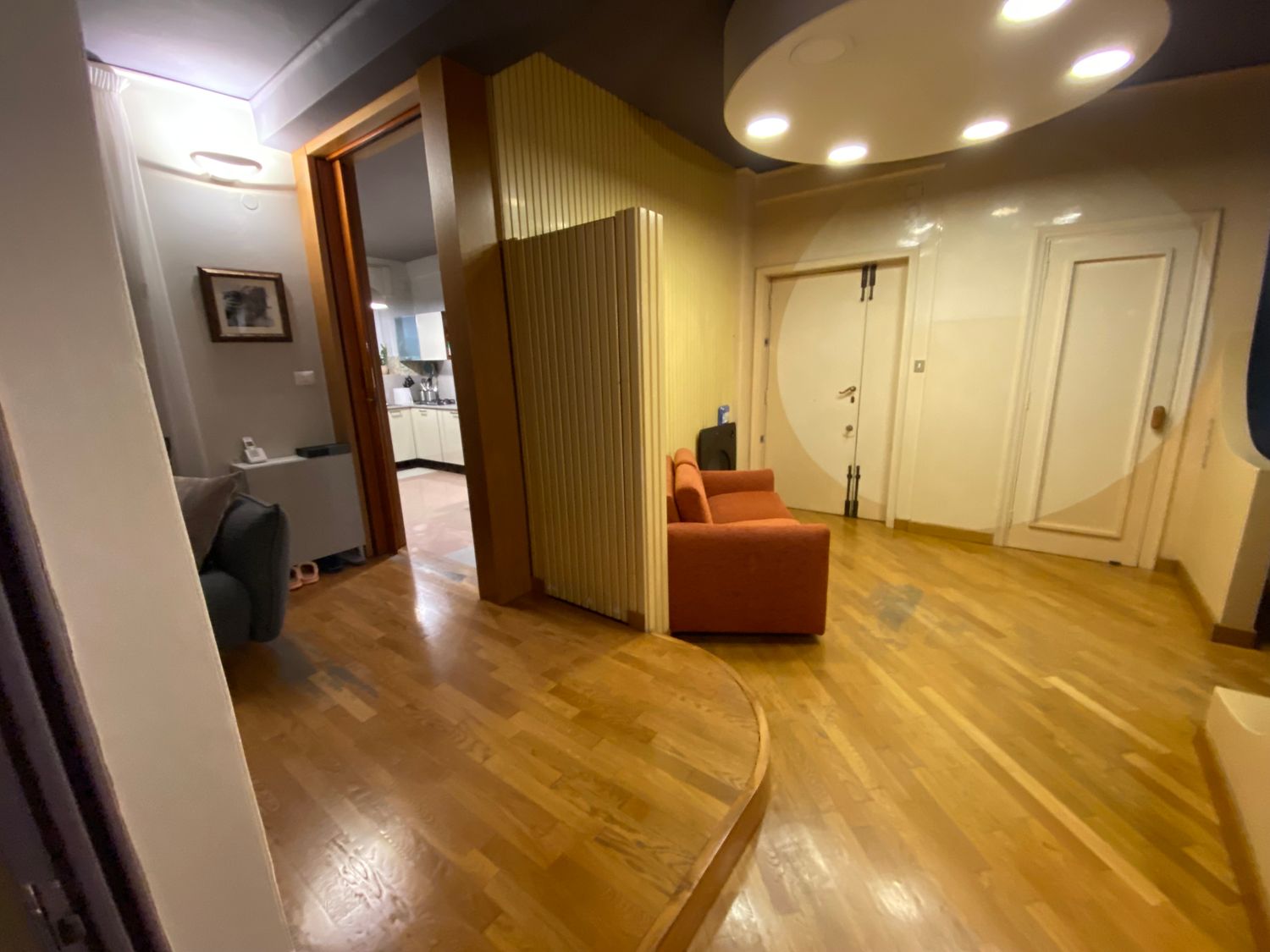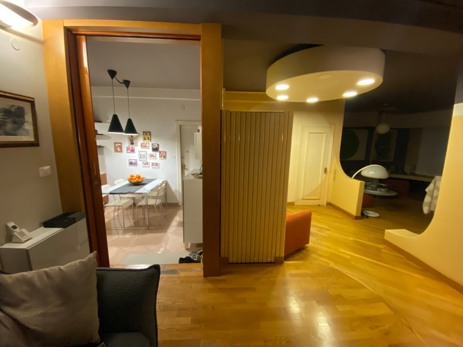 Flooring: clearly, a new floor must be installed in the kitchen and in the area where the platform currently exists (which I wish to remove). I am unsure whether to keep the parquet in the rest of the home (which would need refinishing). Replacing the entire floor would require long timelines and high costs. I would appreciate a suggestion on the matter, and if the parquet is kept, I wonder how it would look next to the new flooring to be selected.