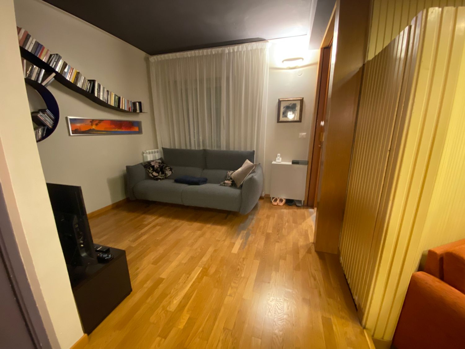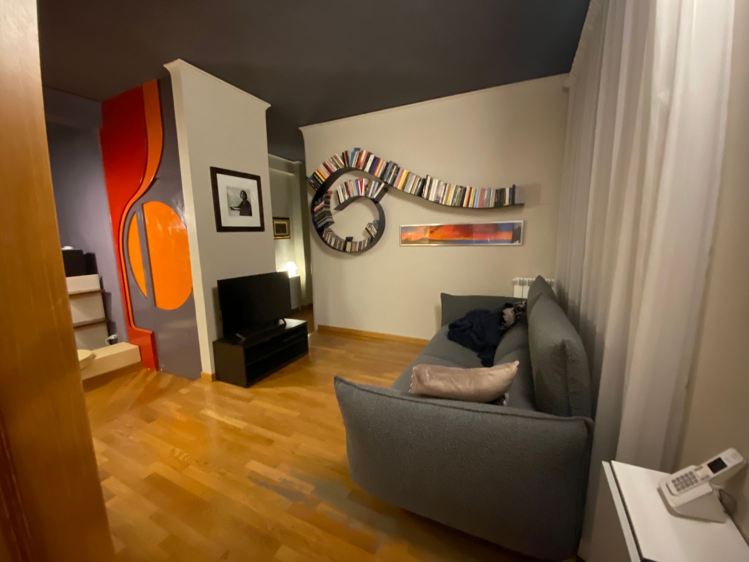 I would like to keep some furnishing elements: the bookcase, Munari’s lamp, and the low white arc lamp.