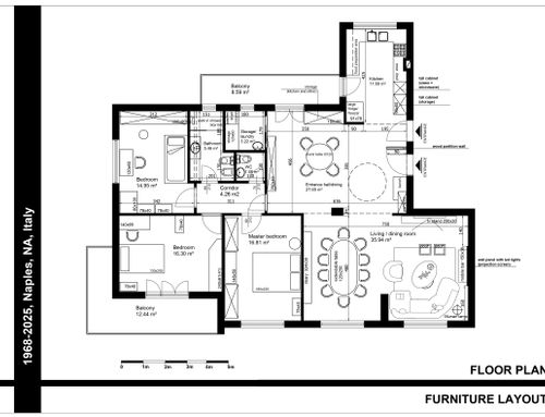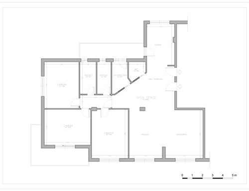 The renovation concerns only part of the flat because a full refurbishment would require very long timelines and very high costs that we do not intend to undertake at the moment. I have thoroughly studied the needs and the available spaces, and my idea is to keep the bedrooms as they are and intervene only in the living/kitchen/bathrooms area.