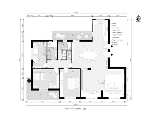 2) pianta attuale dell'appartamento completo di arredi