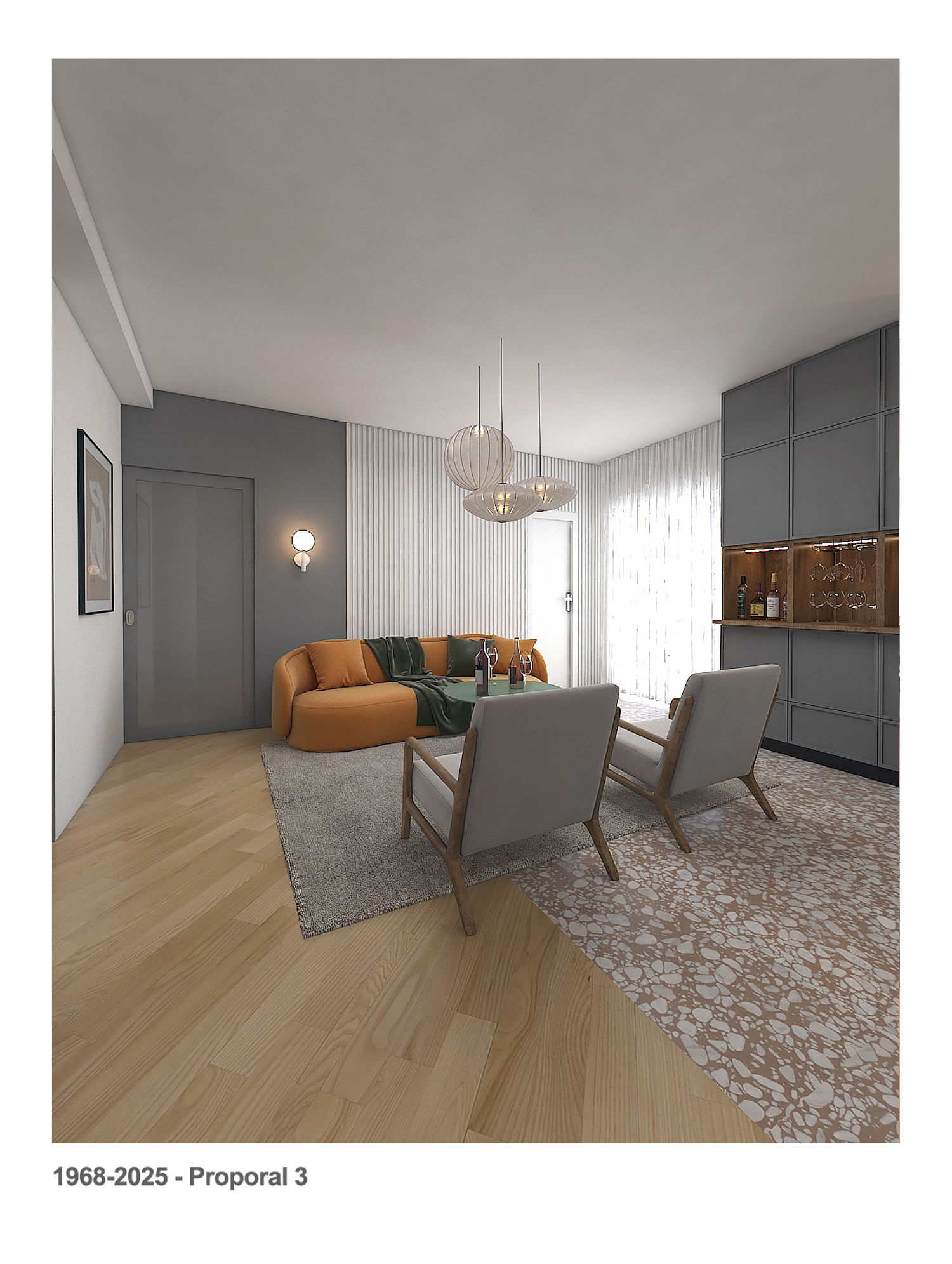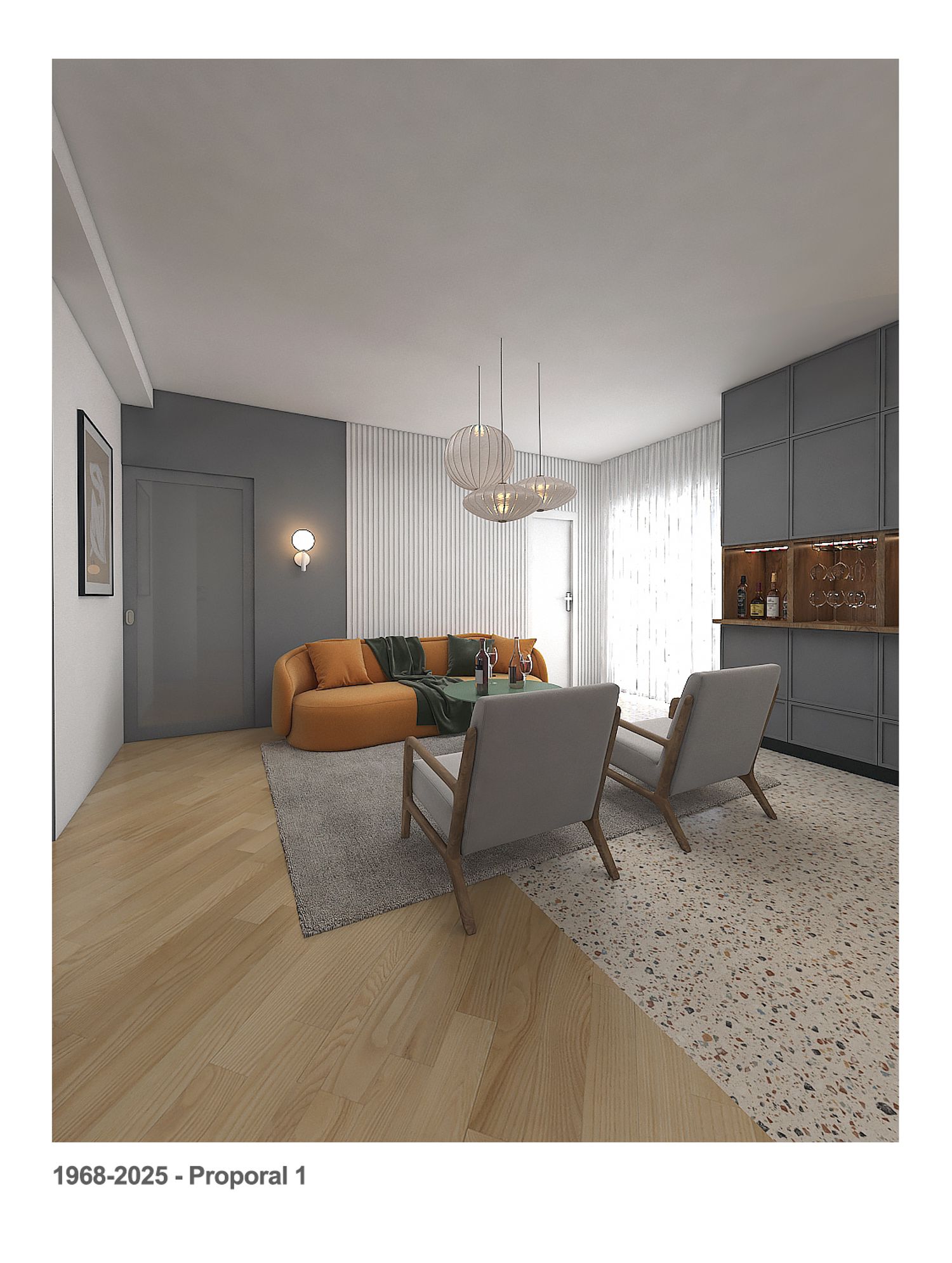 We took inspiration from the current design of the apartment in terms of colors and geometric shapes and tried to make it a little simpler and more modern.