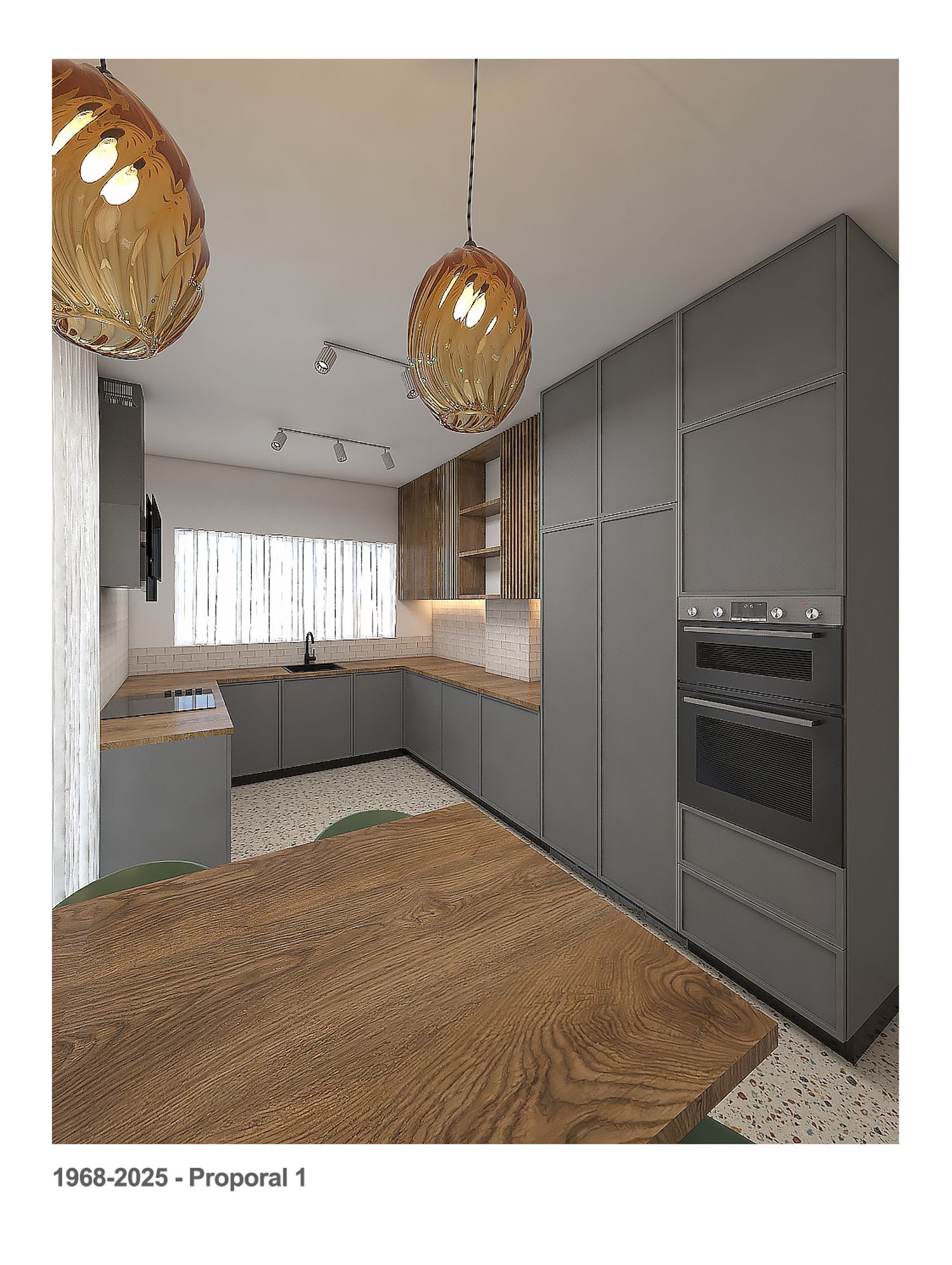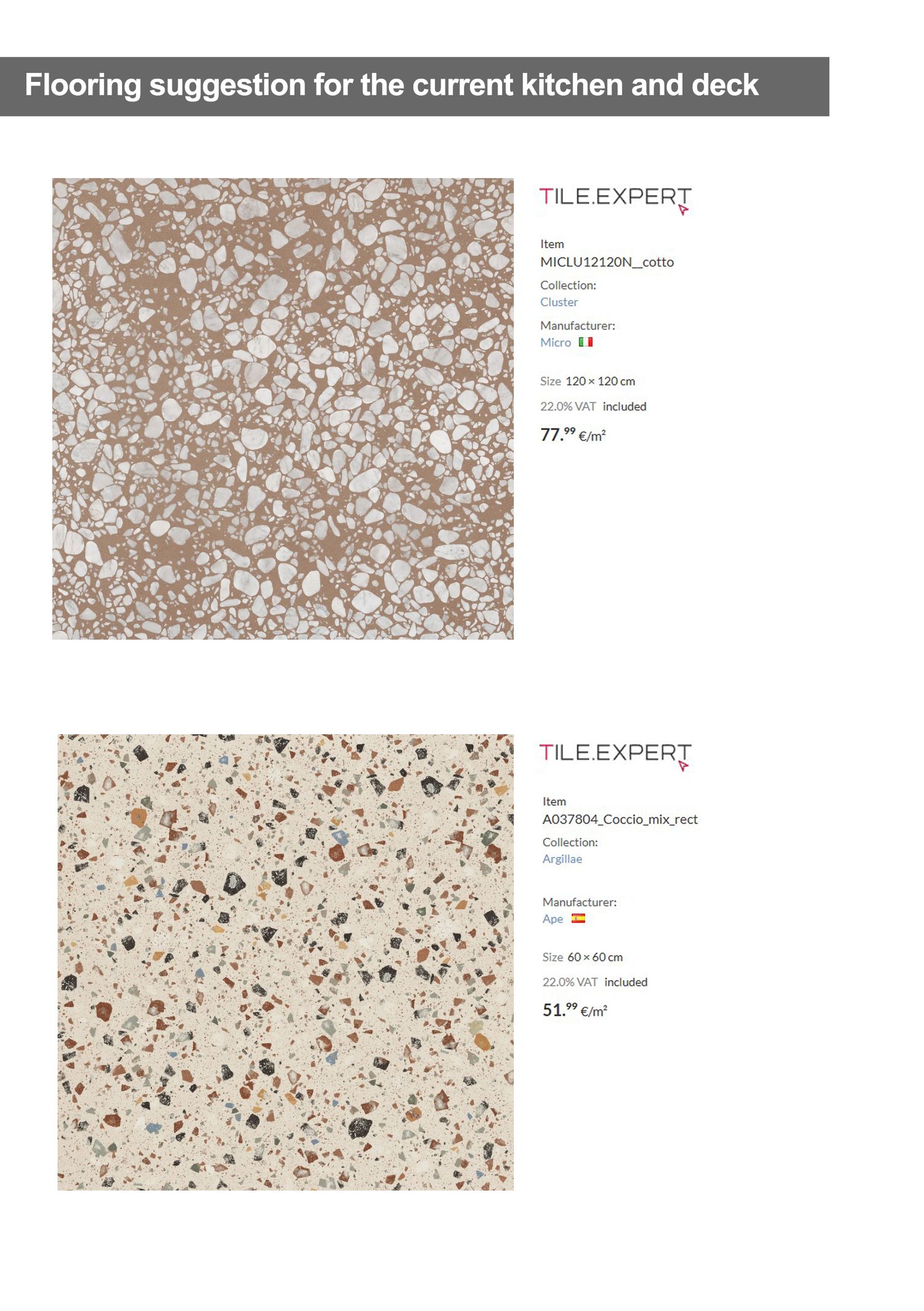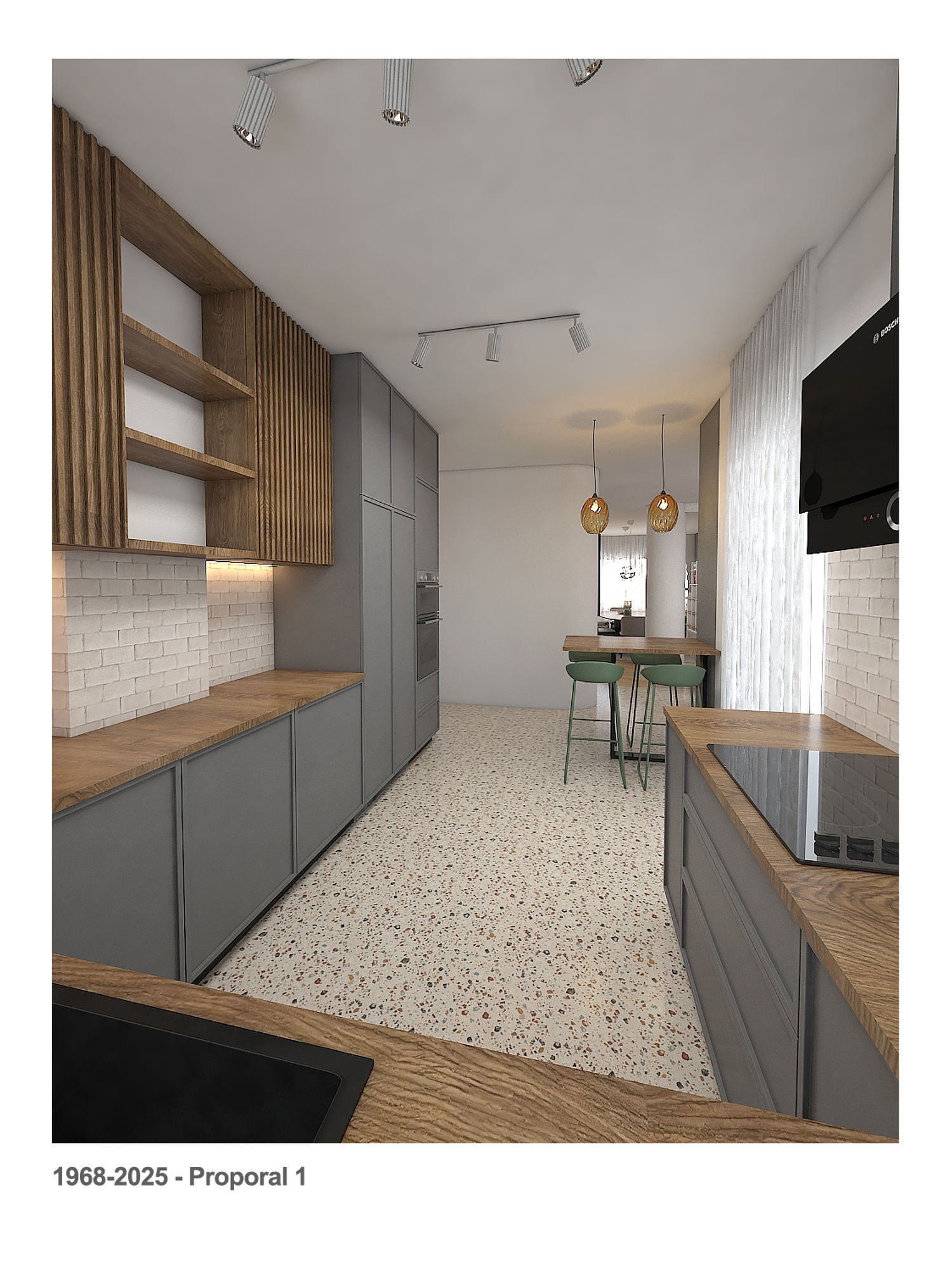 We prepared some renderings and two suggestions for the flooring of the kitchen area and the current platform.