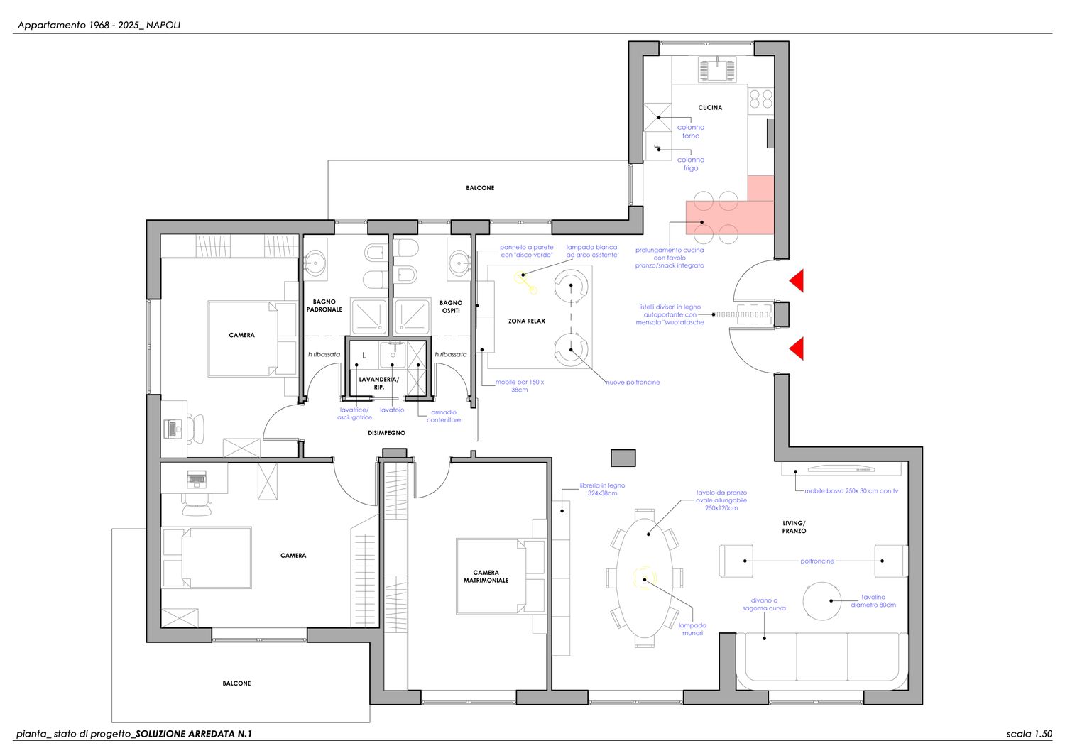 Il progetto di ristrutturazione parziale del suo grazioso appartamento a Napoli nasce con l’obiettivo di rispettare pienamente le indicazioni fornite, migliorando la funzionalità degli spazi e valorizzandone la percezione complessiva.