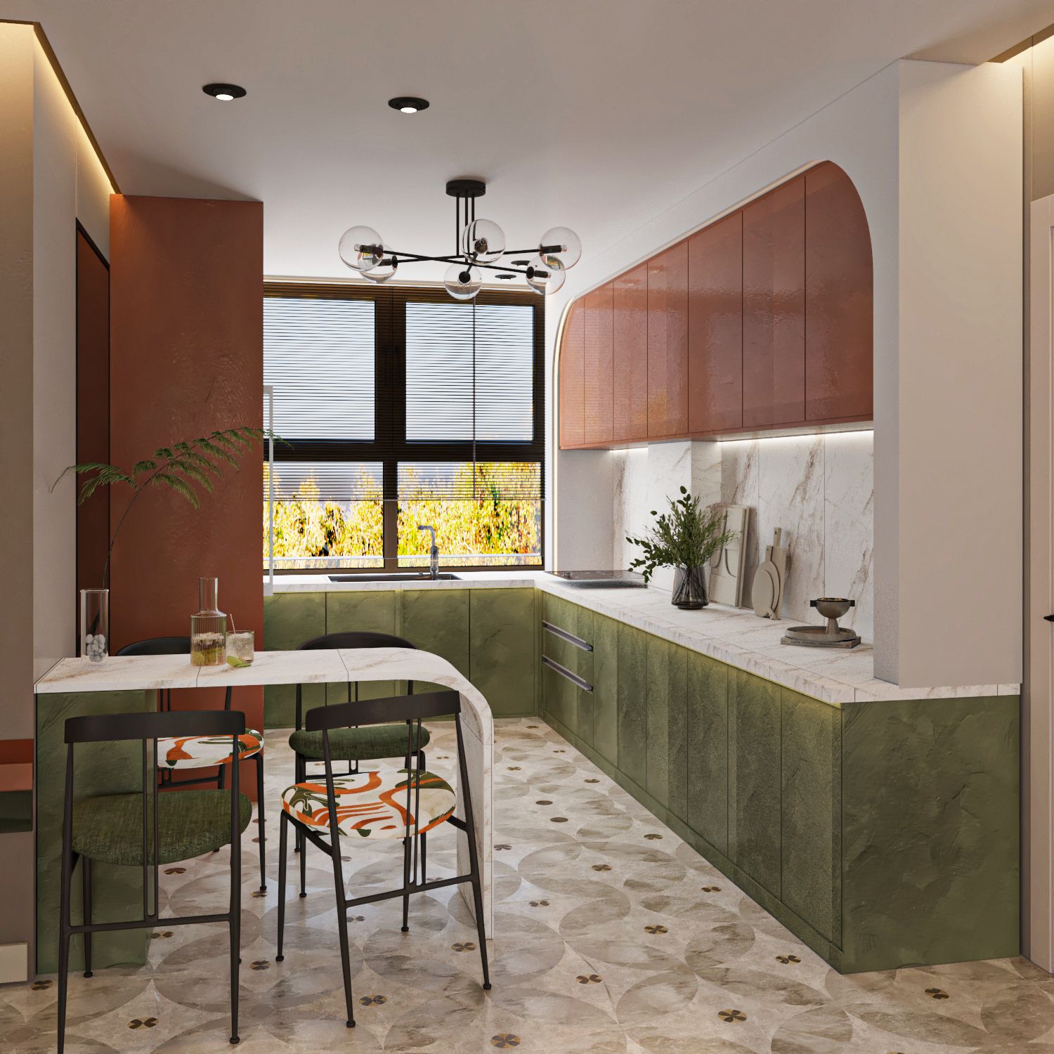 Abbiamo mantenuto l'atmosfera originale del 1968 e i mobili che amate. Per far risaltare lo spazio, abbiamo aggiunto sottili dettagli retrò e Art Déco. Questi tocchi si integrano perfettamente con le curve esistenti della casa, conferendole un aspetto raffinato e unico.