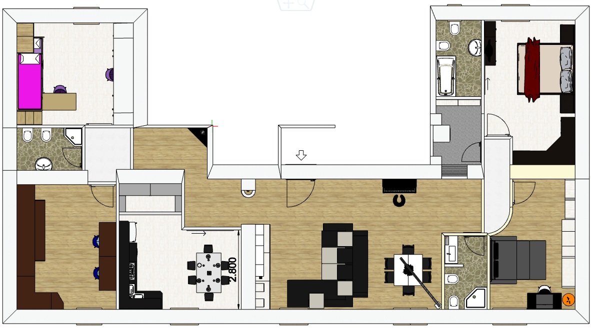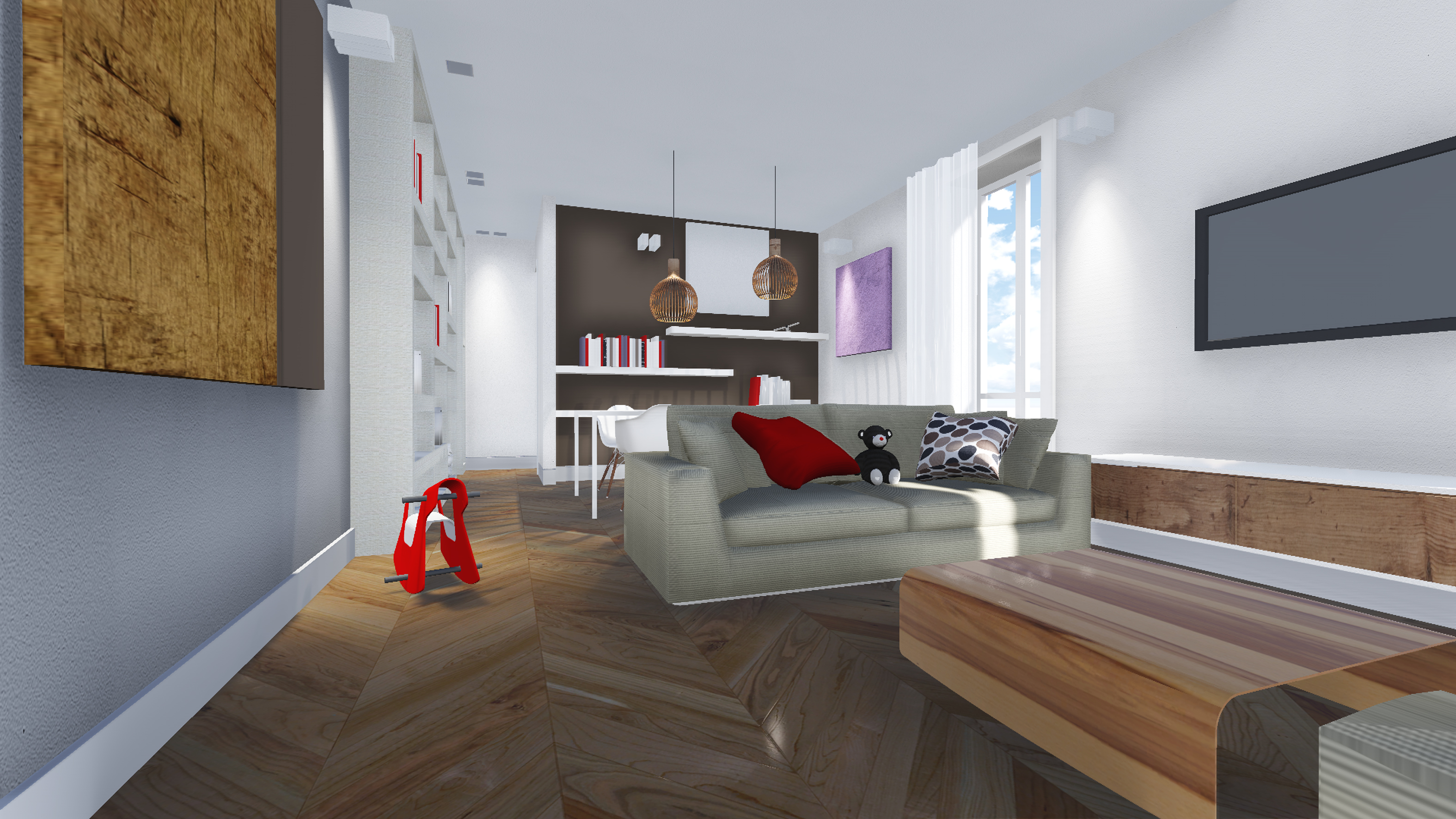 - colore bianco di sfondo, parquet chiaro, ambienti accoglienti