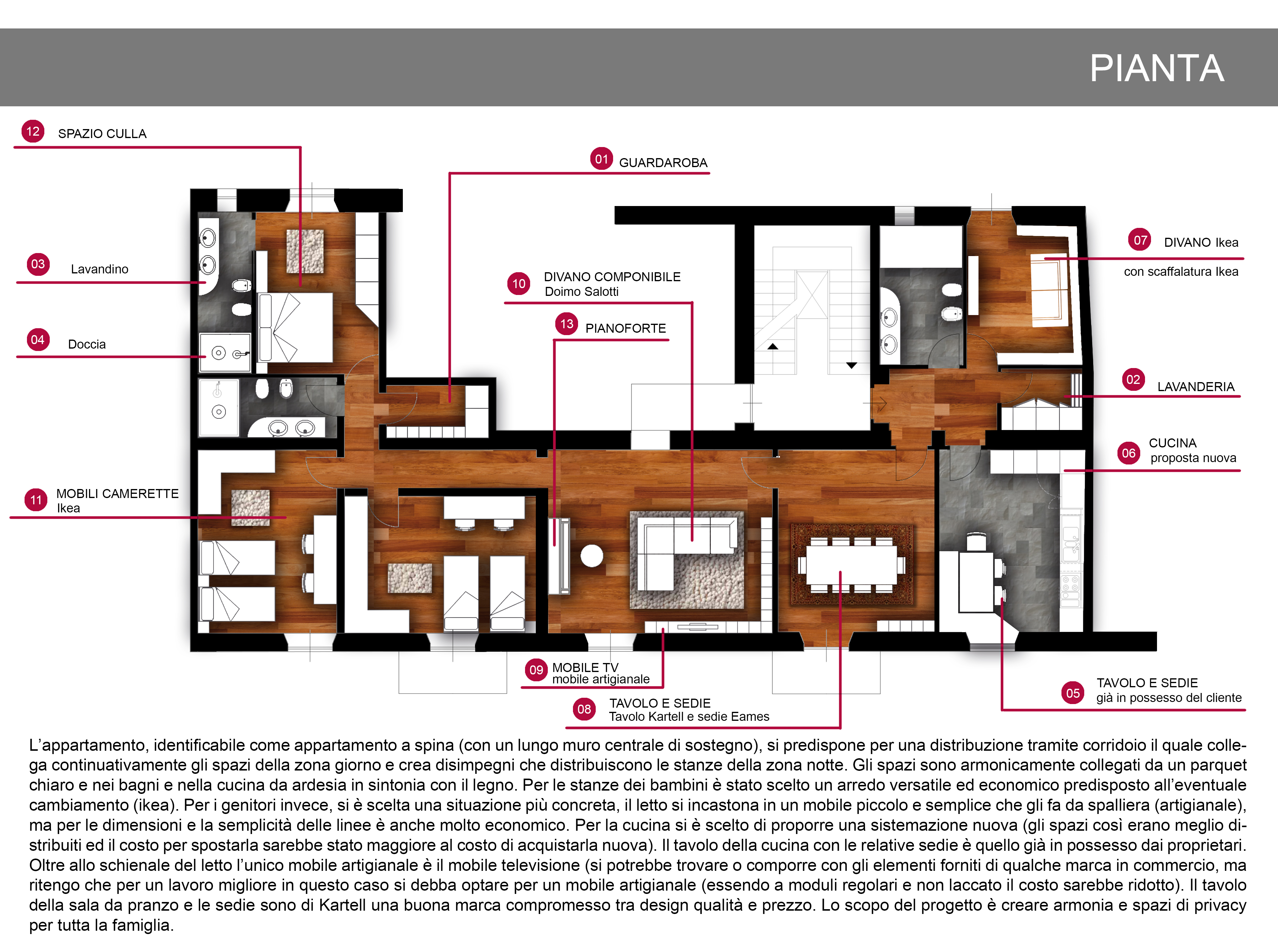 - ci piace una ambiente vivo e fresco, accogliente e che da un lato lasci spazio alla fantasia e alle passioni di ciascuno (libri di grandi e piccini, chitarra e piano, sport, giocattoli, piatti/tazze,etc...) dall'altro abbia ampi spazi contenutivi (nascosti) per tenere tutto in ordine.