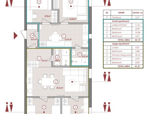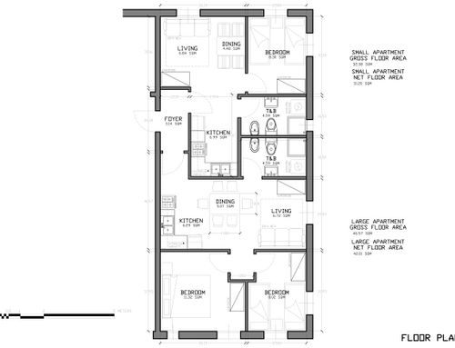 I would like to get 2 apartments, one larger and one smaller (minimum 28 sqm).