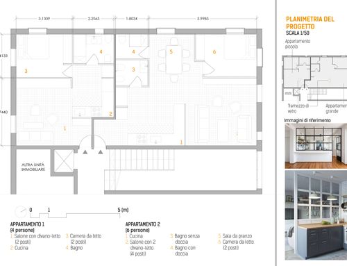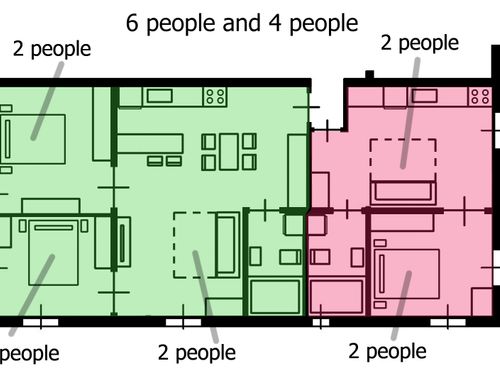Devo poter ospitare nel primo piccolo, 4 persone e nel secondo grande, 6 persone (se possibile).