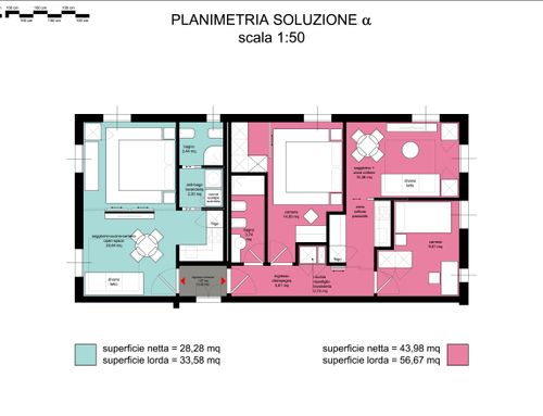 Vorrei ottenere 2 appartamenti , uno più grande ed uno più piccolo (minimo 28 mq) .