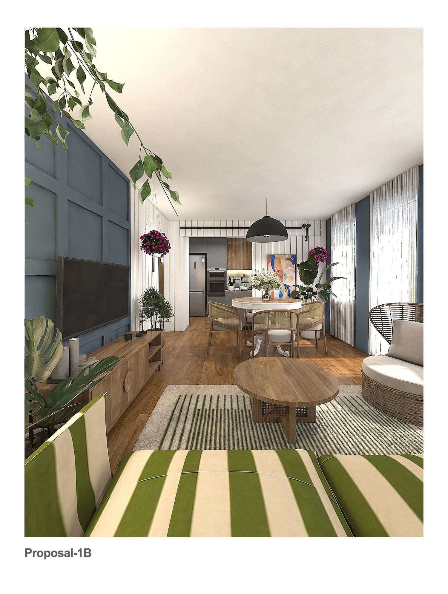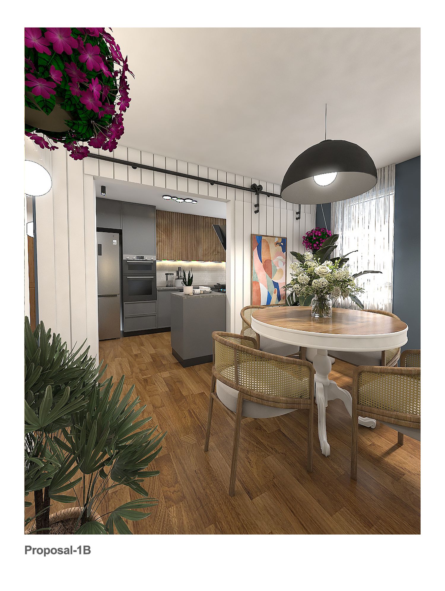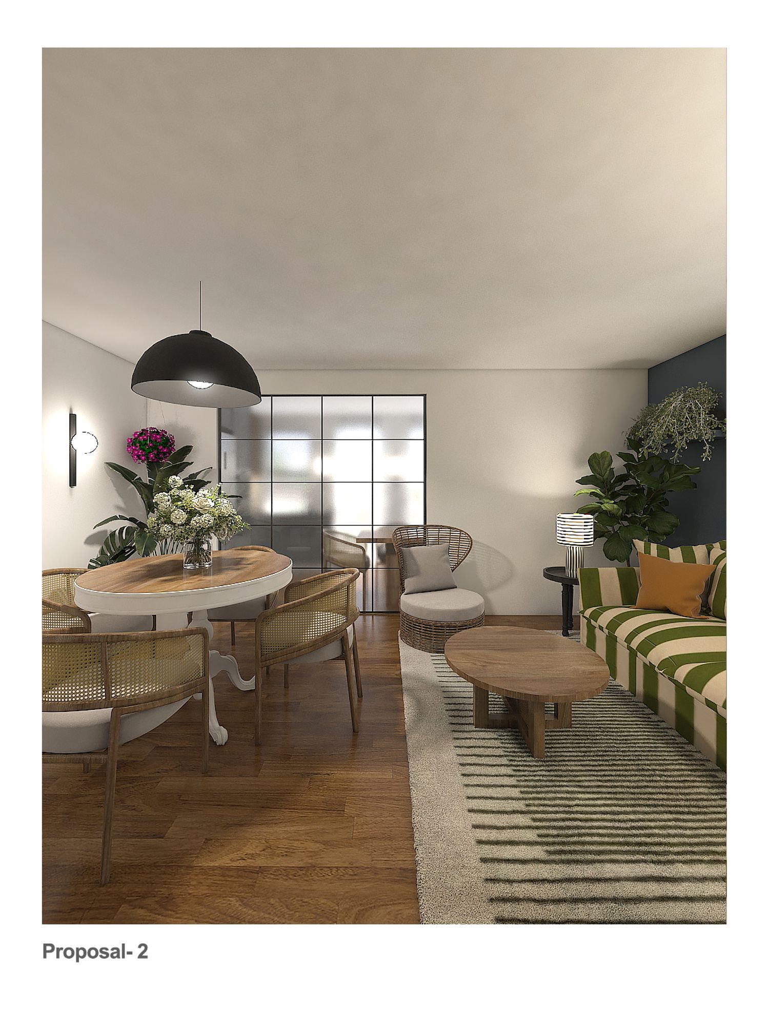 The third proposal aims to increase the dimensions of the kitchen and move it to a bright environment with access to the balcony and also reduce the windows of the dining/living room.