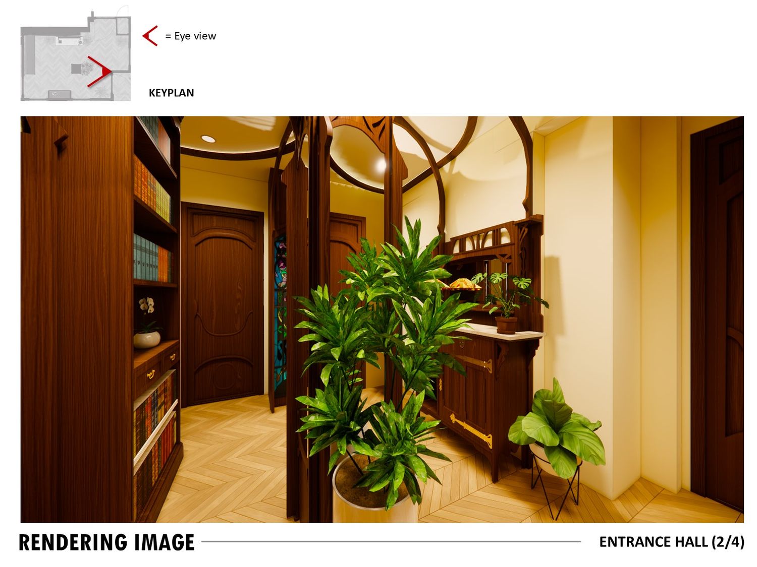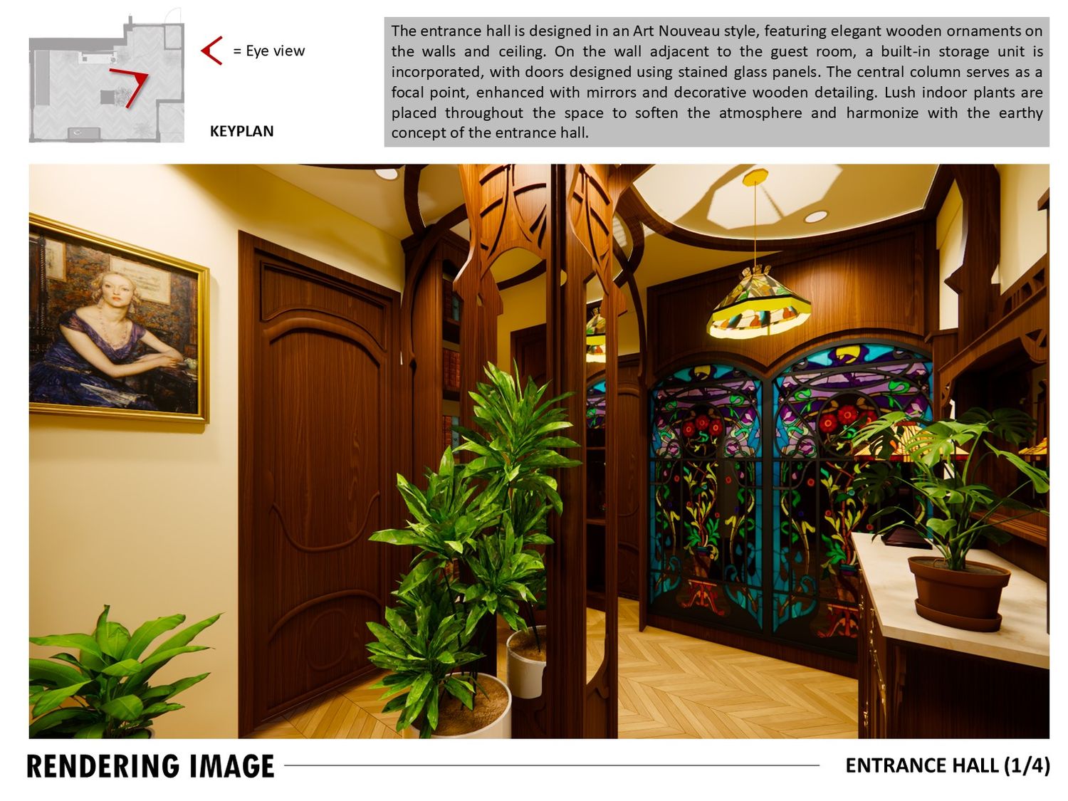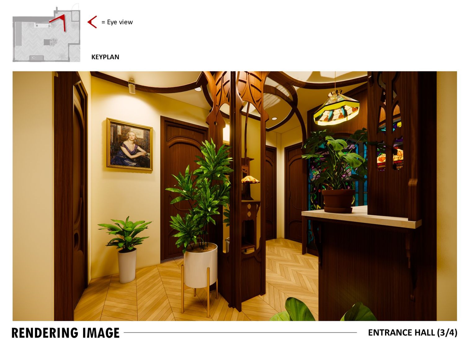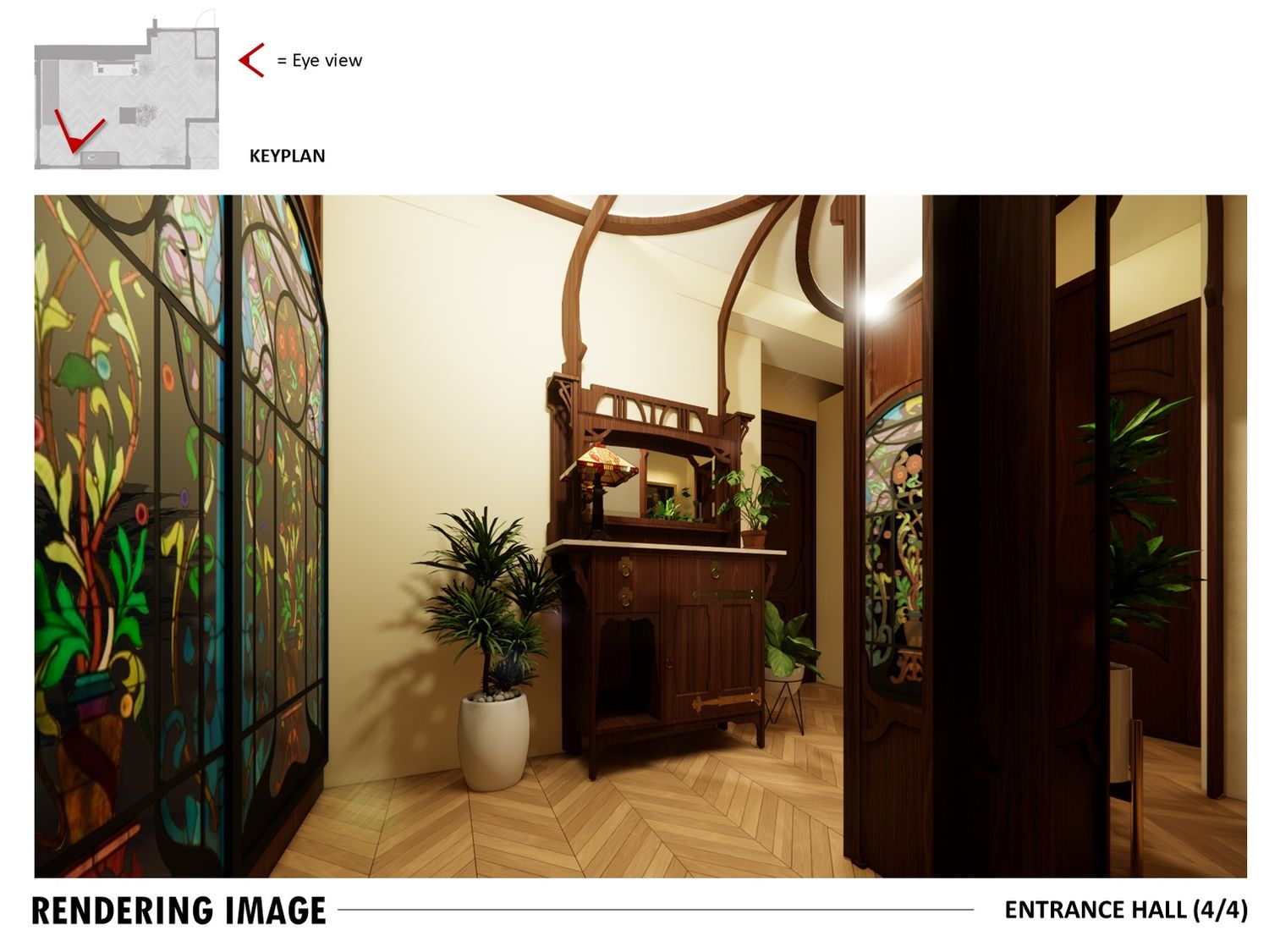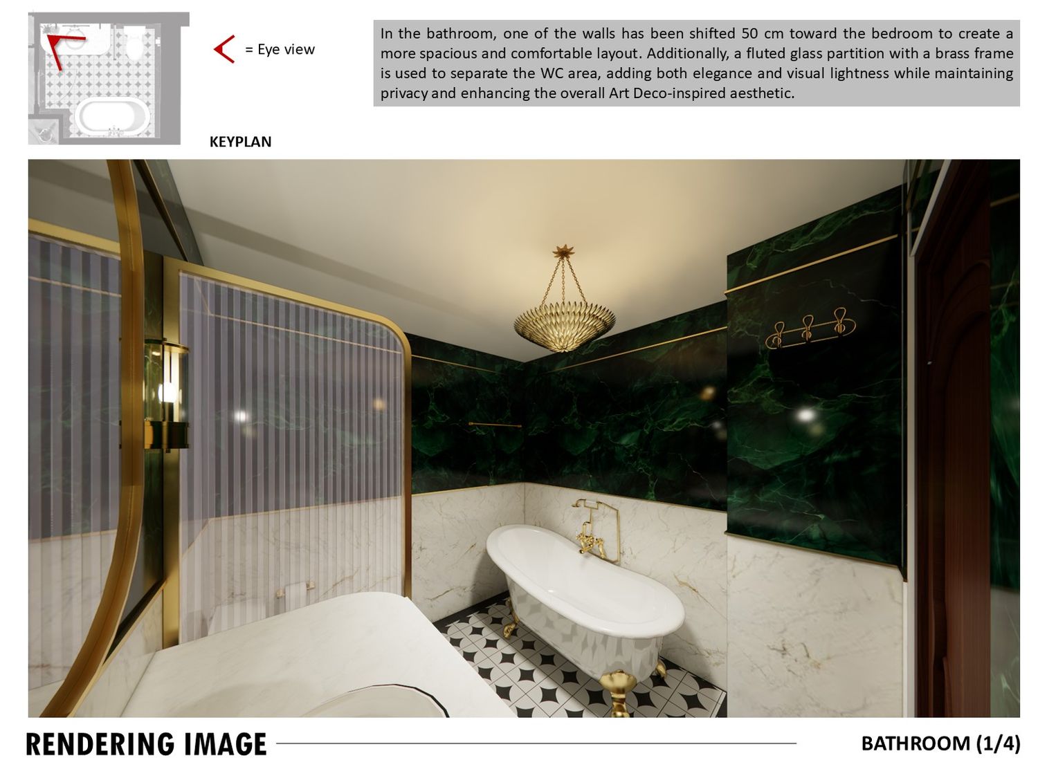 An Art Decoinspired bathroom, Art Nouveau hallway, and rich toned bedroom complete the design, balancing elegance, practicality, and timeless charm.