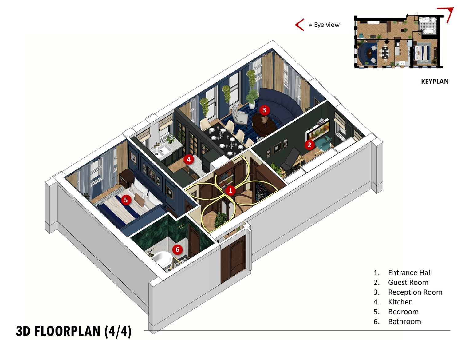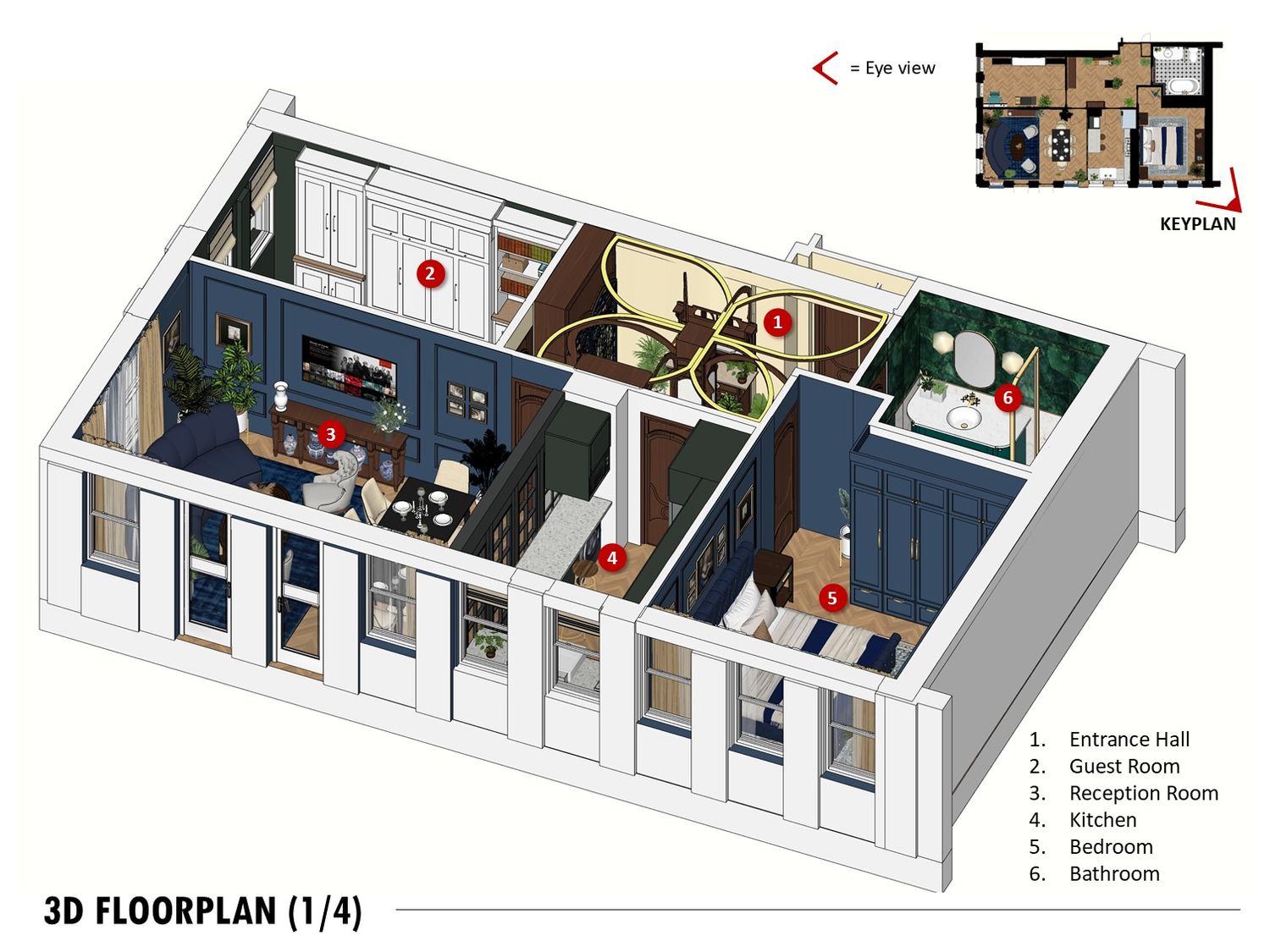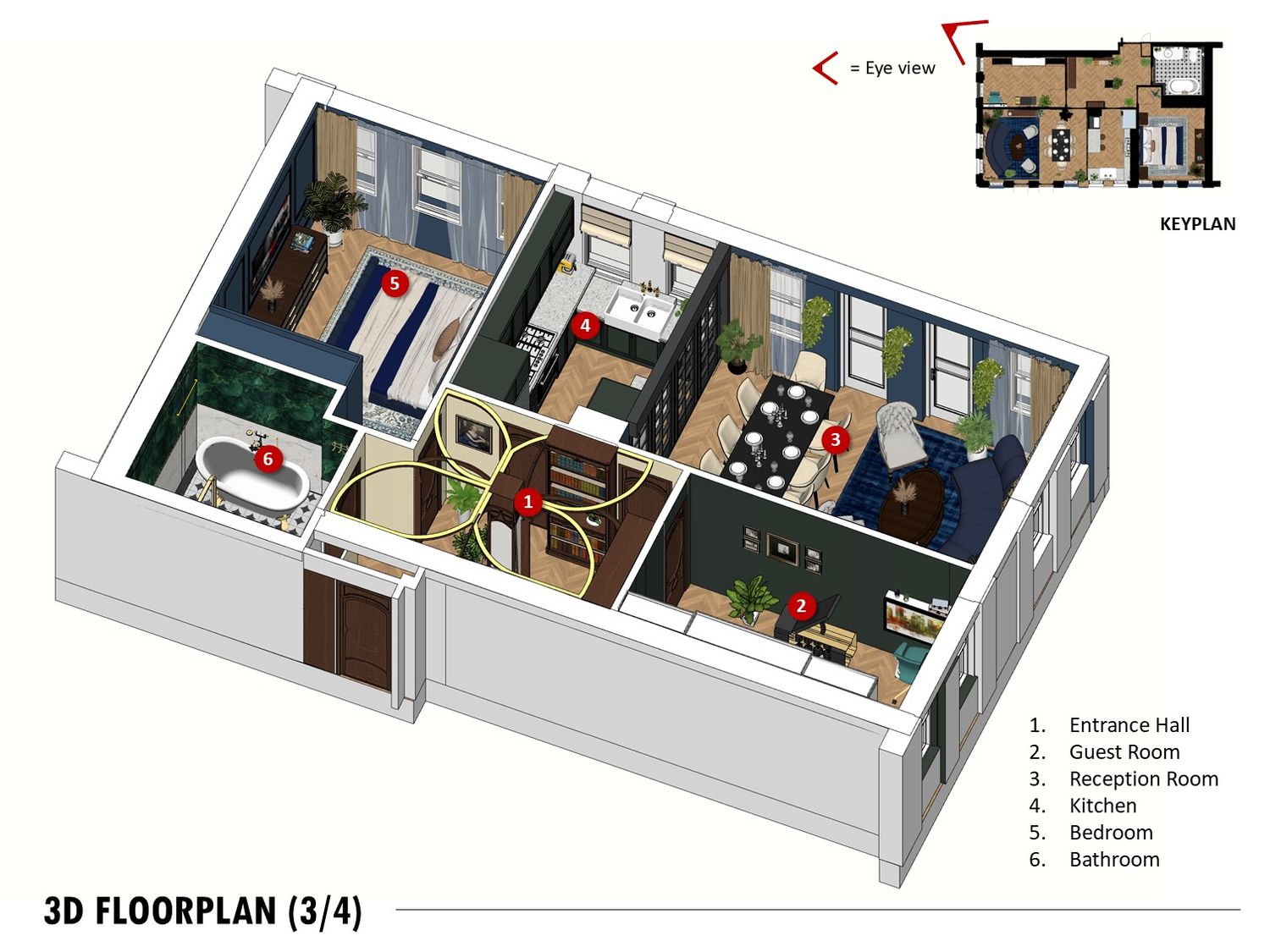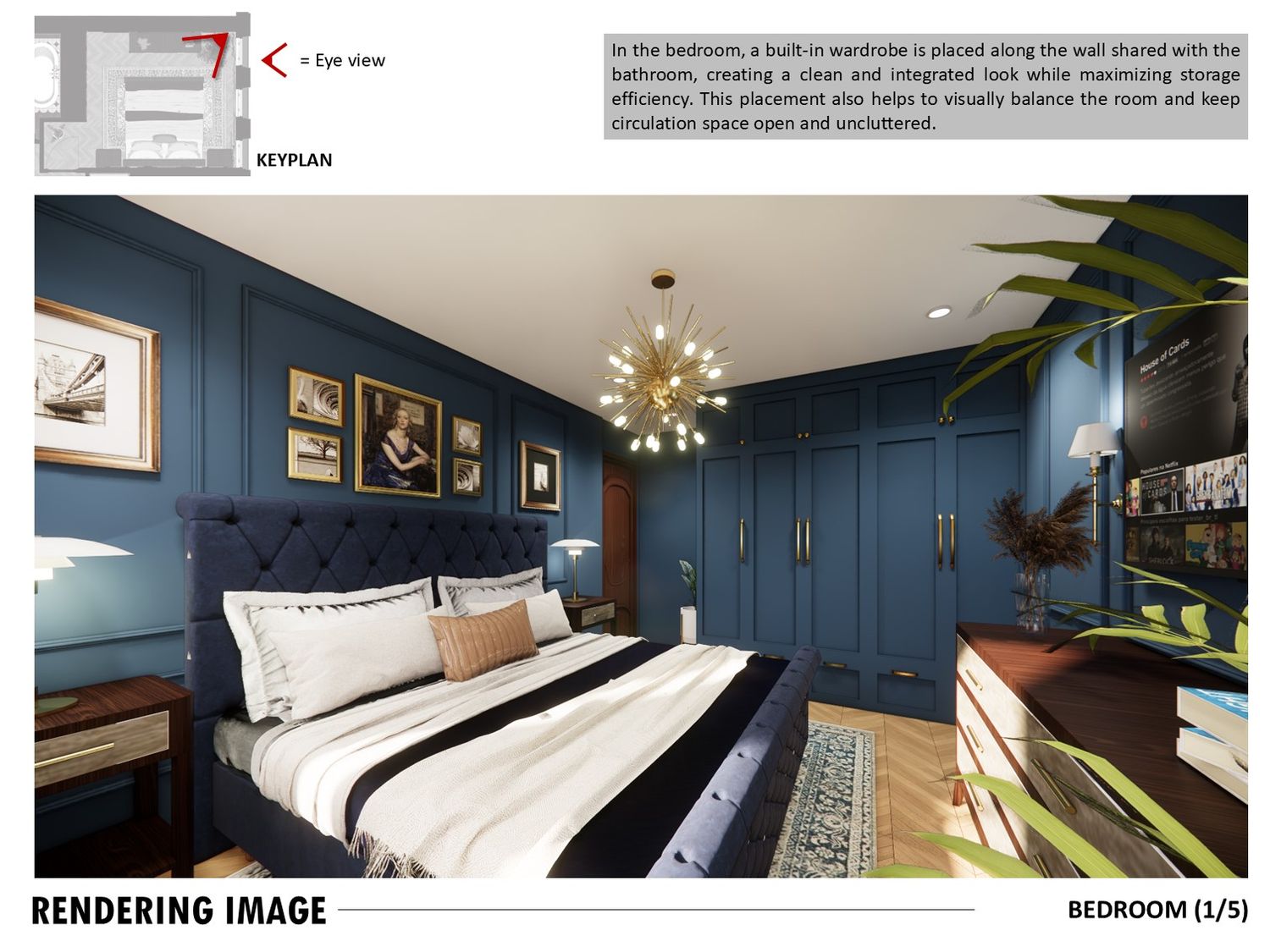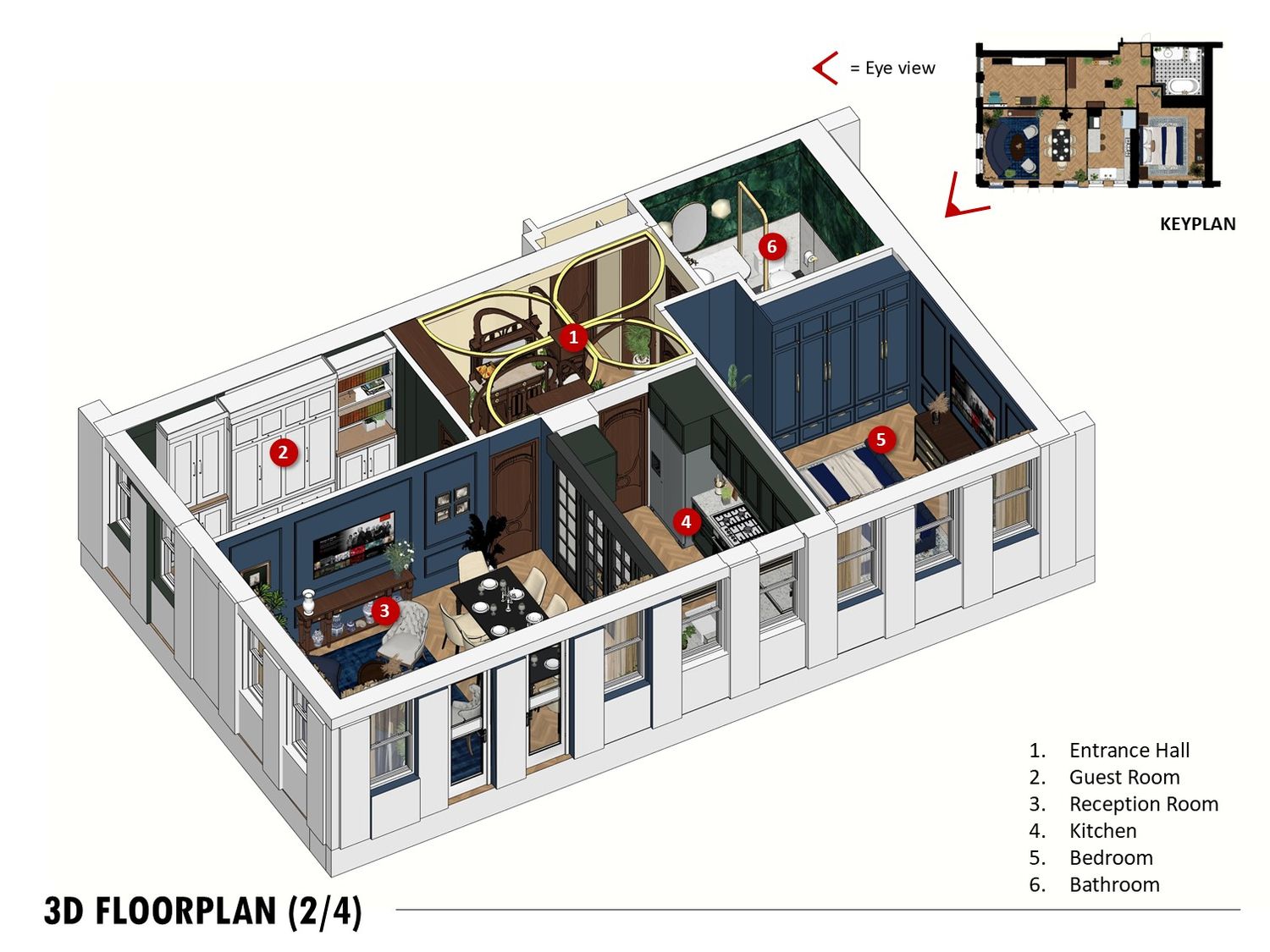 An Art Decoinspired bathroom, Art Nouveau hallway, and rich toned bedroom complete the design, balancing elegance, practicality, and timeless charm.