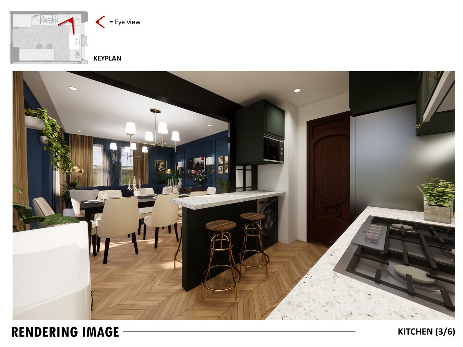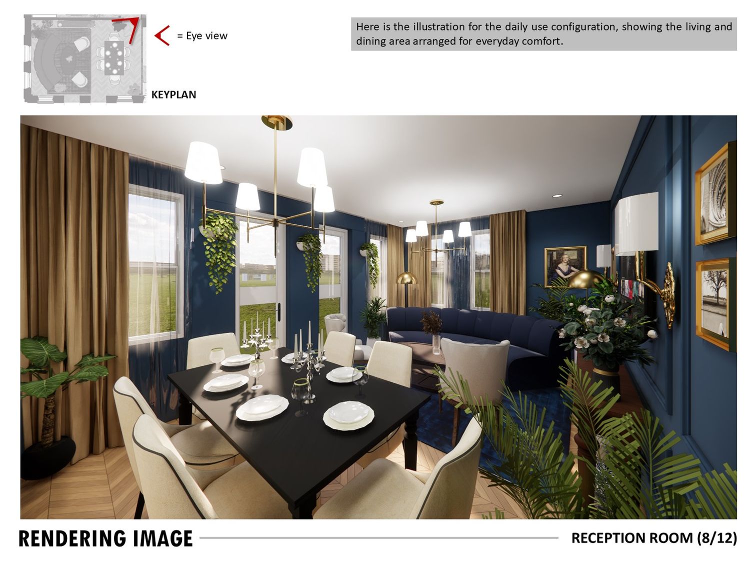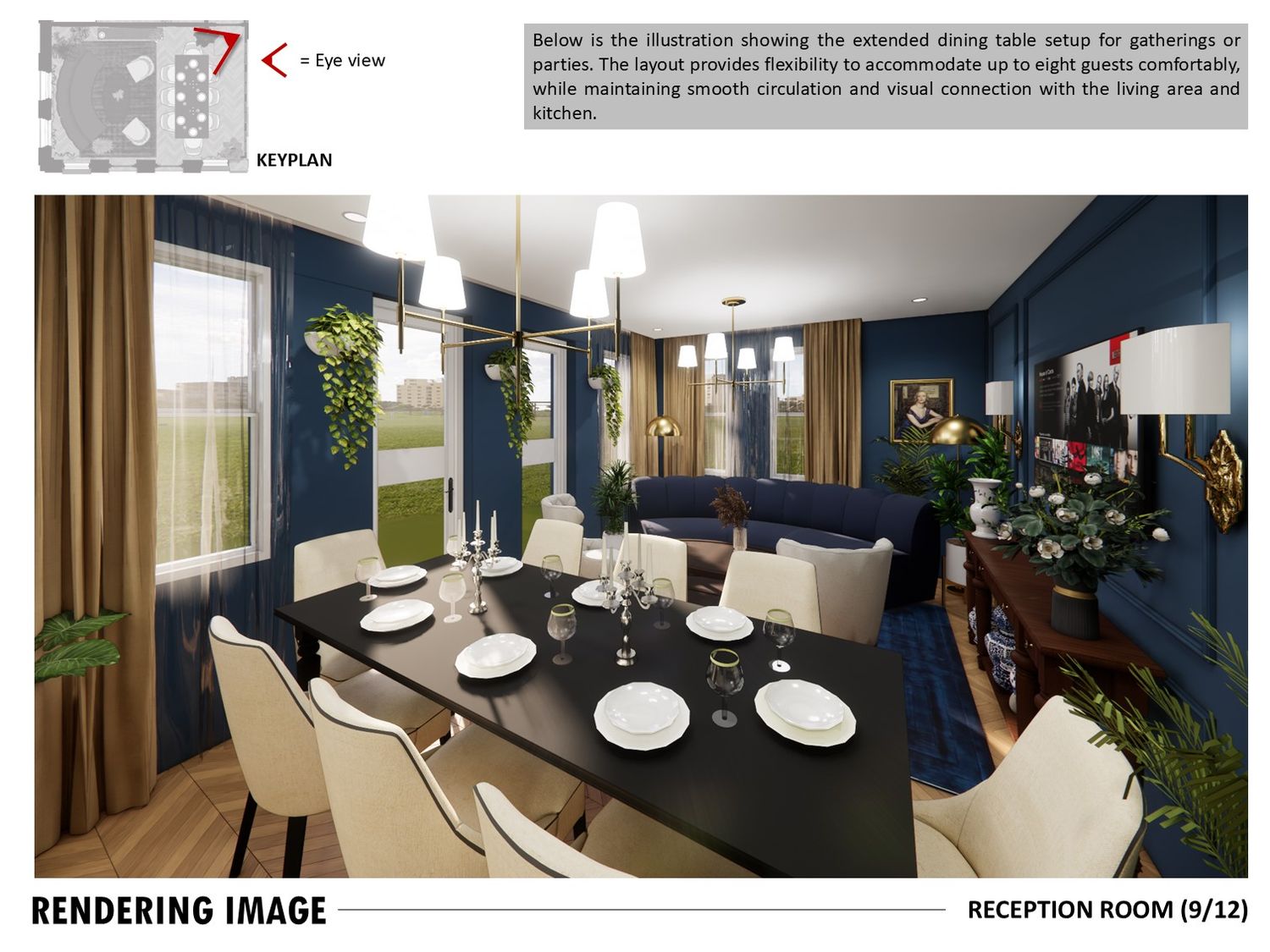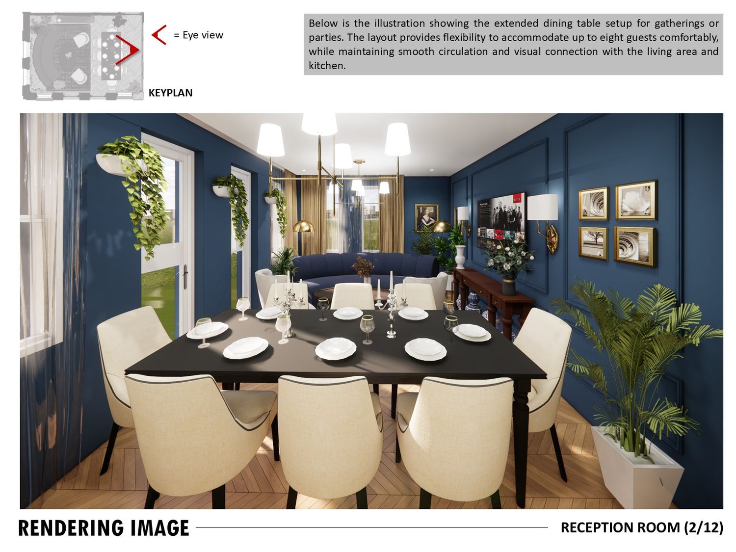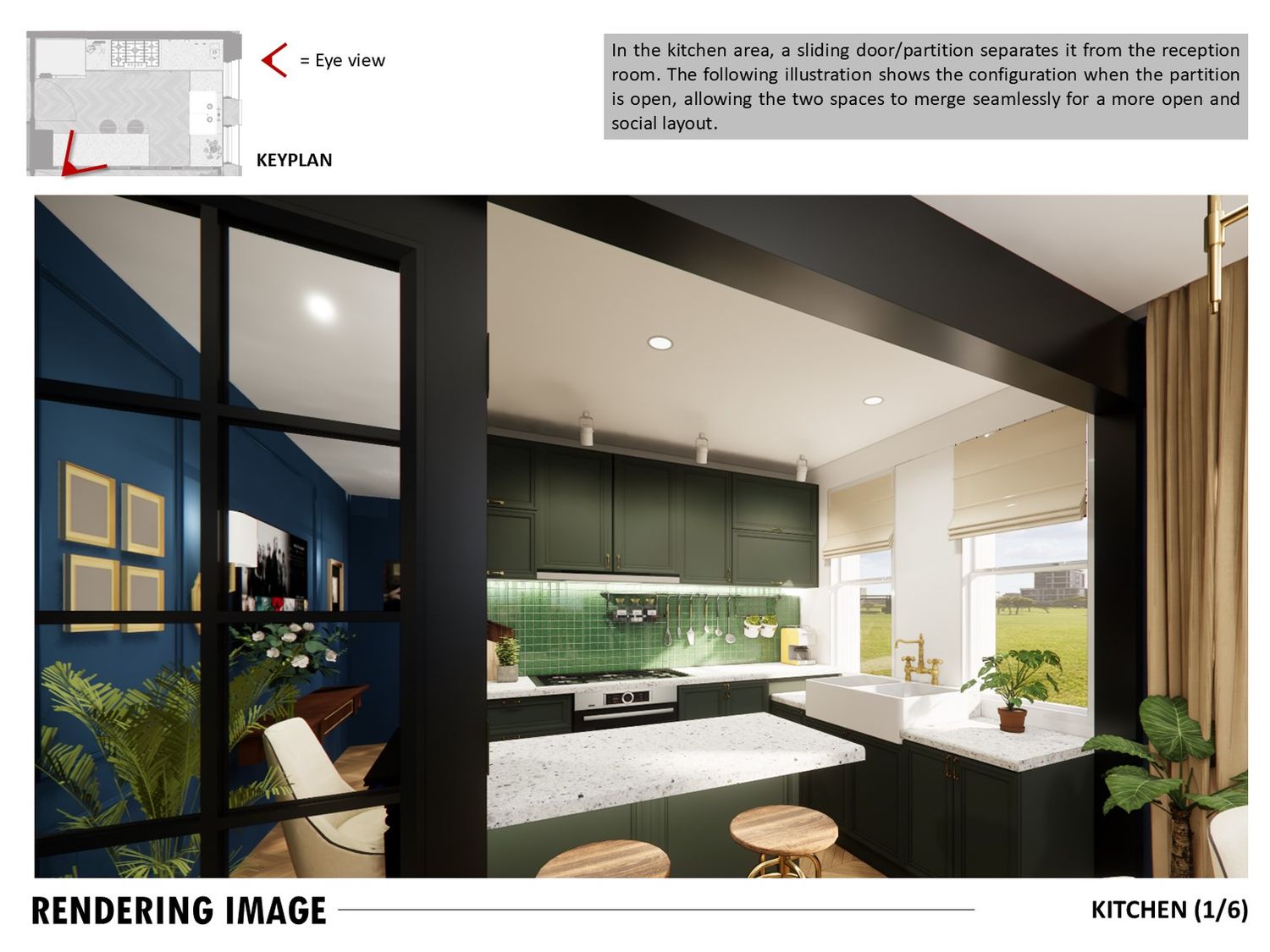 The layout connects spaces through sliding partitions and multi use furniture, allowing easy transition between daily use and entertaining.