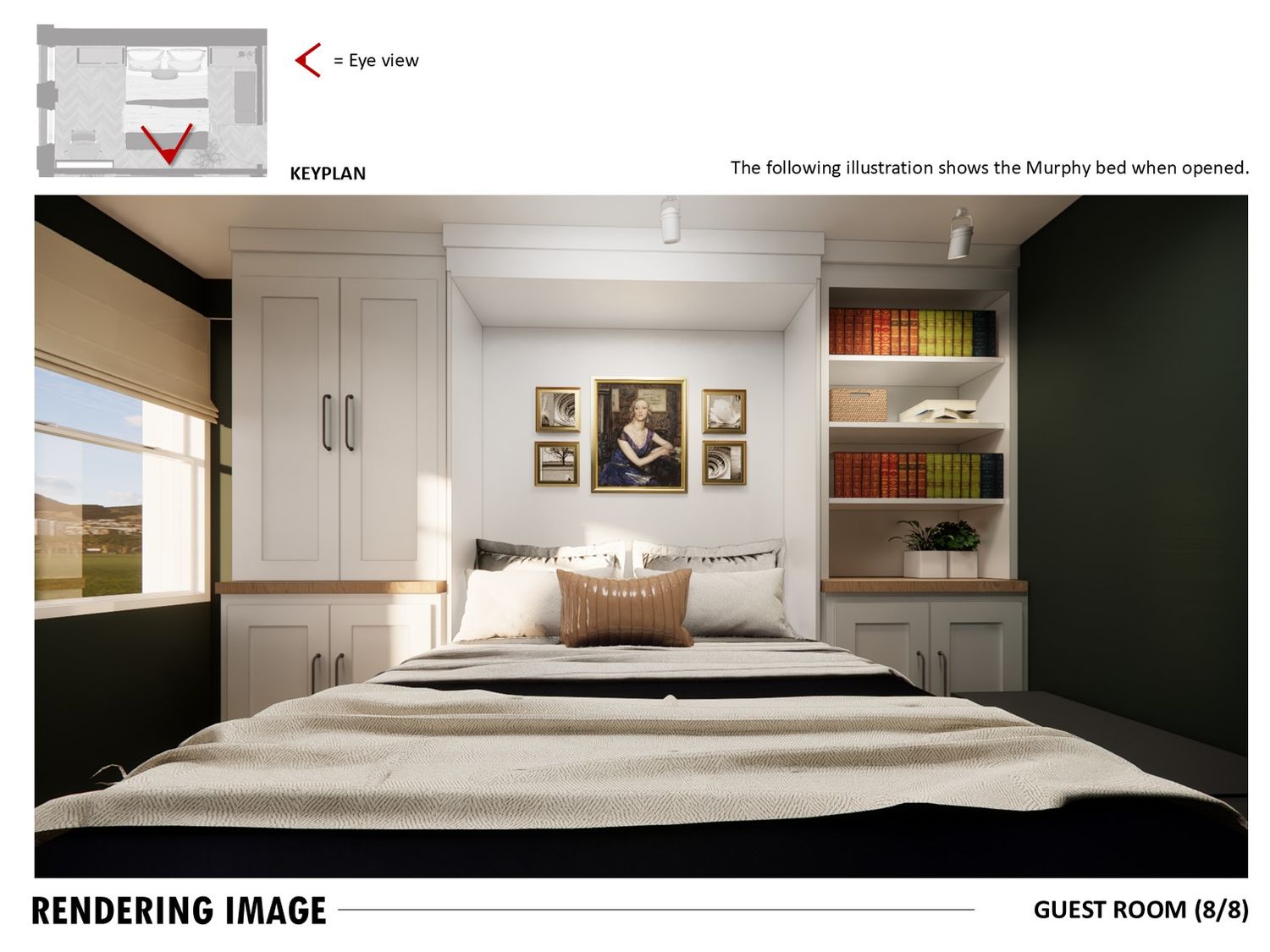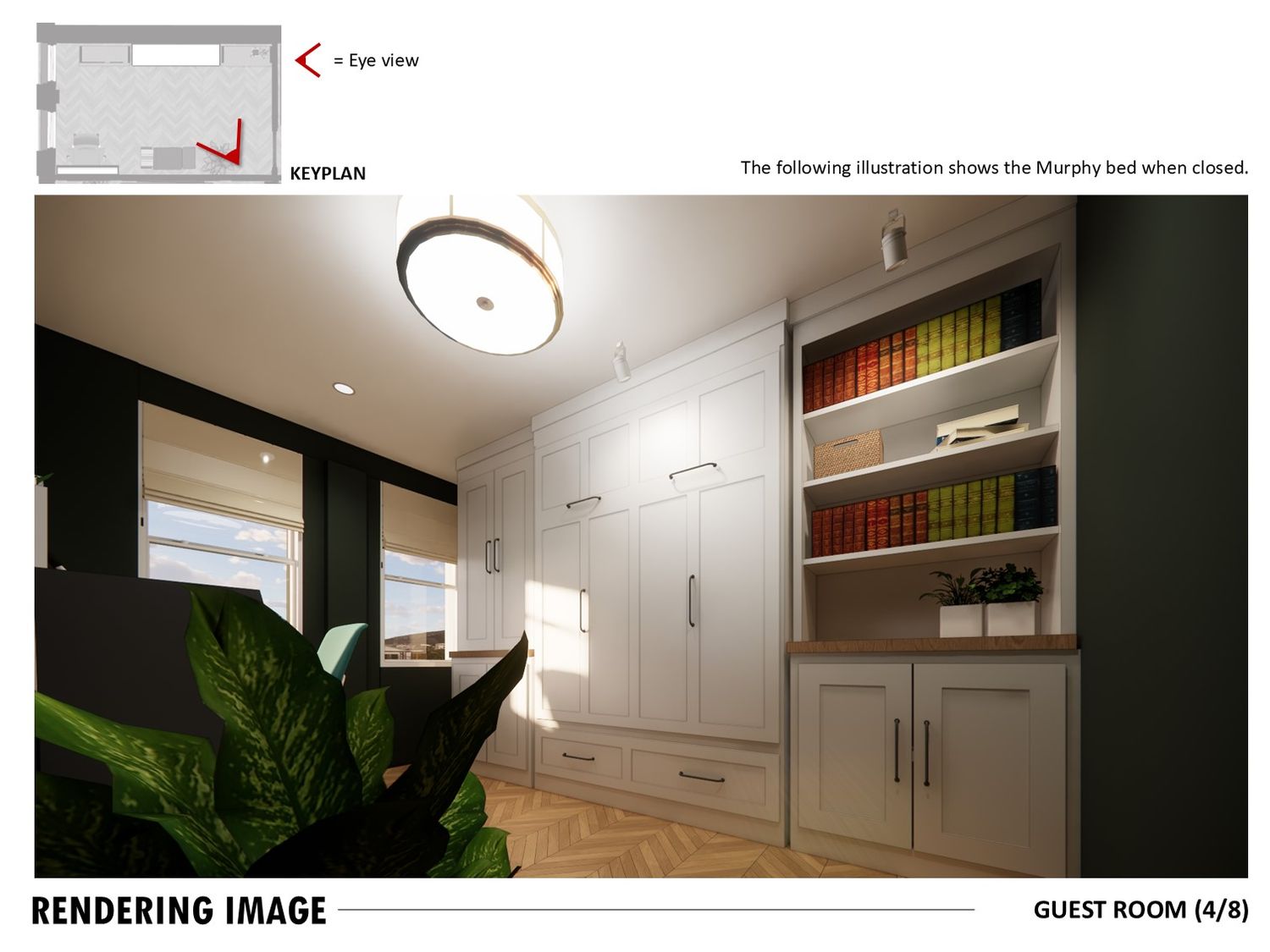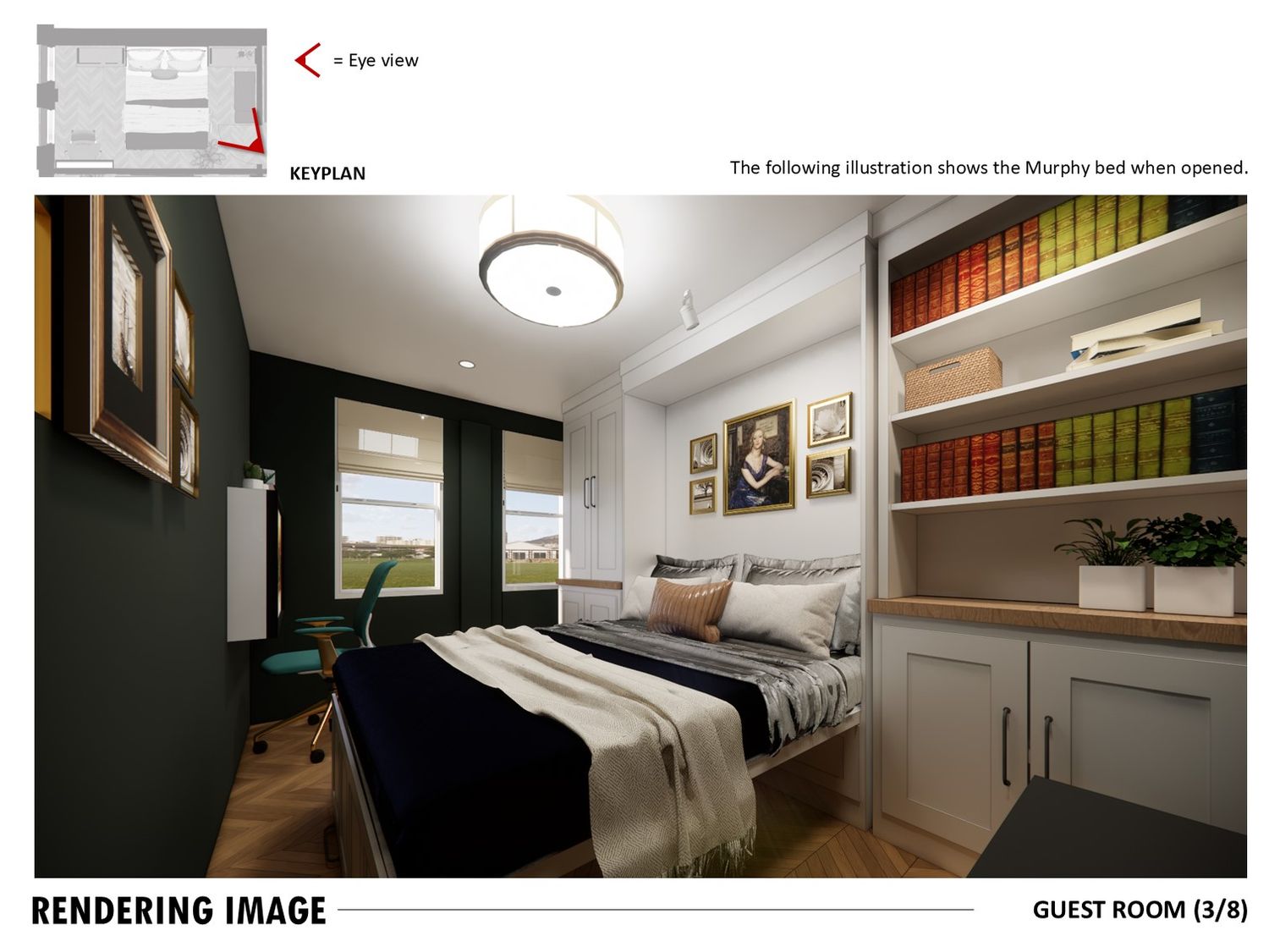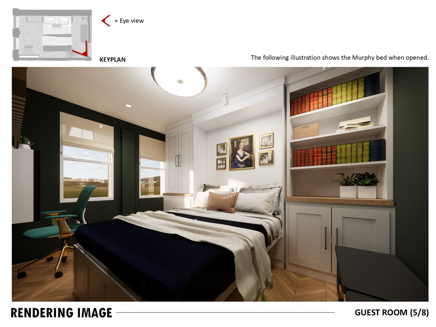The study doubles as a guest room with a Murphy bed and foldable desk.