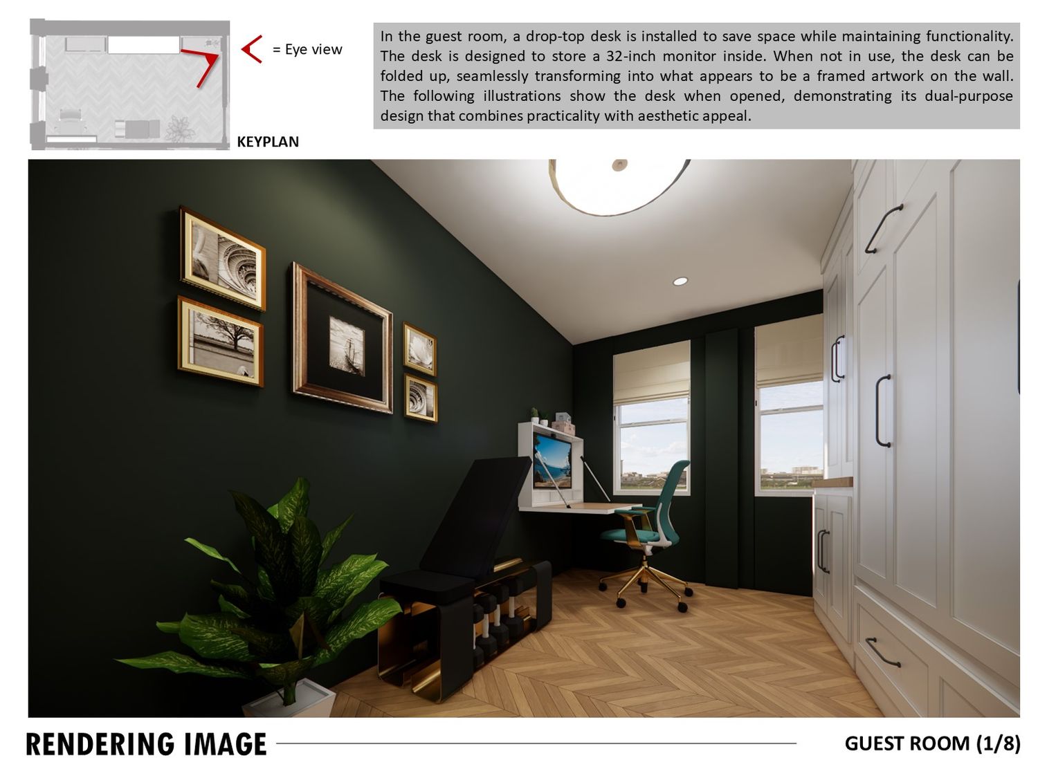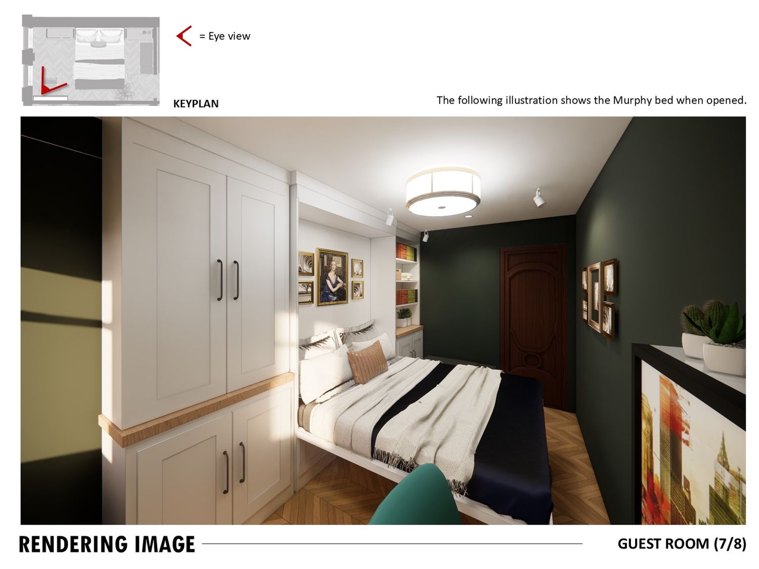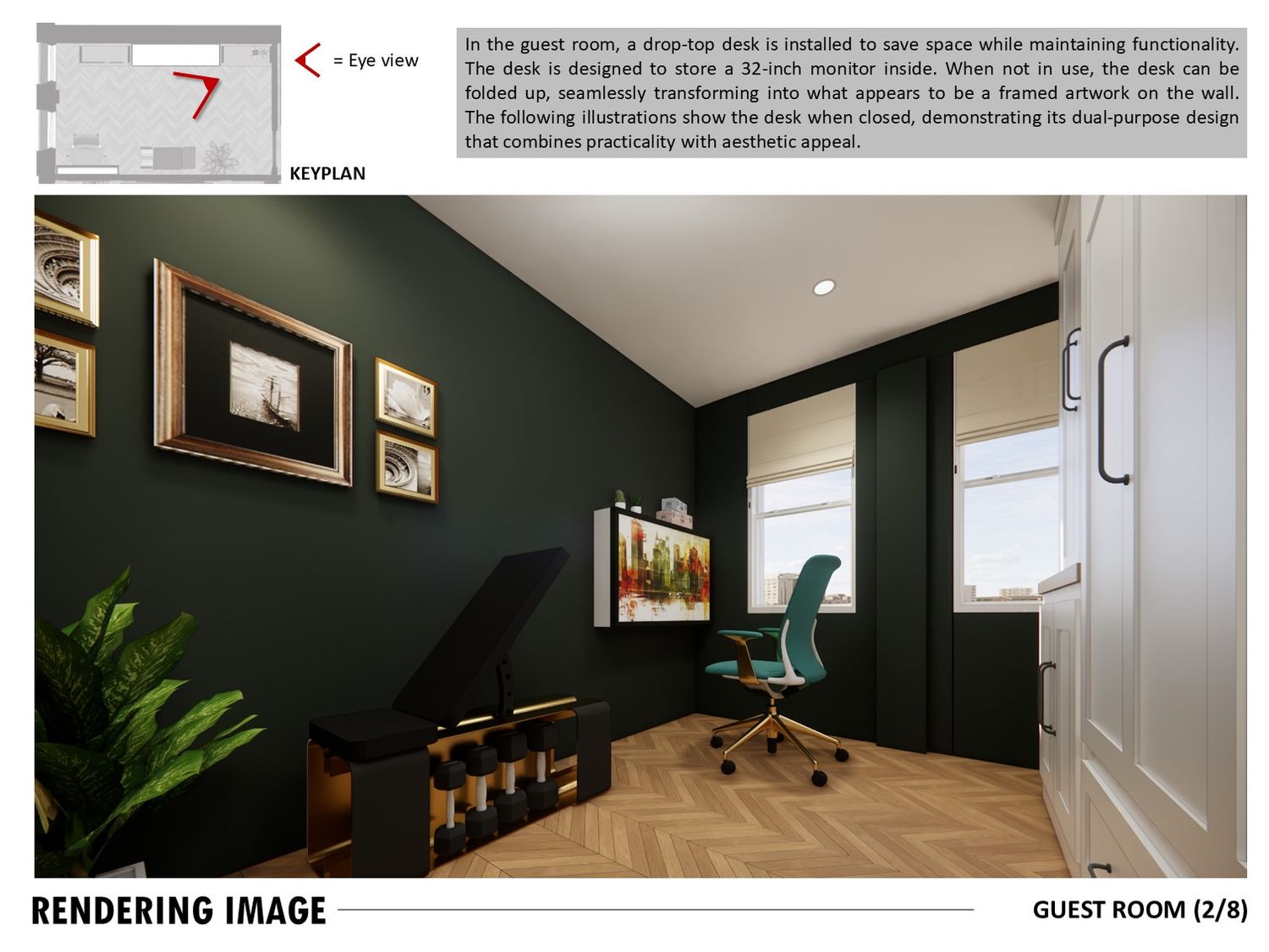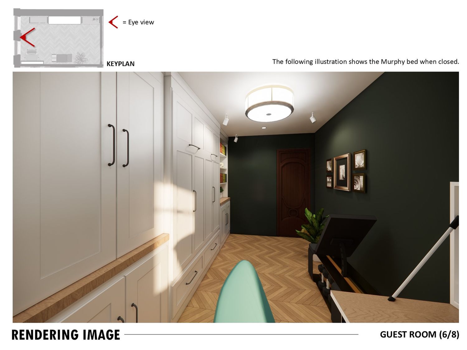 The study doubles as a guest room with a Murphy bed and foldable desk.