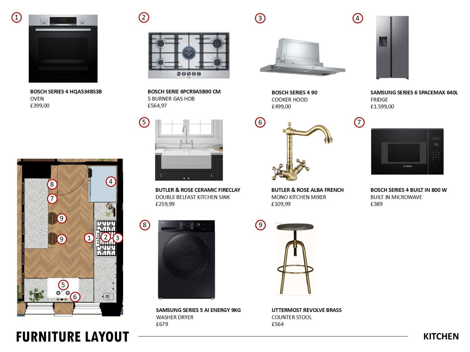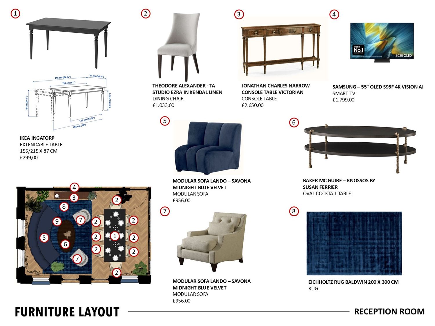 A Shaker style kitchen opens to the living-dining area with an extendable table and modular sofa.