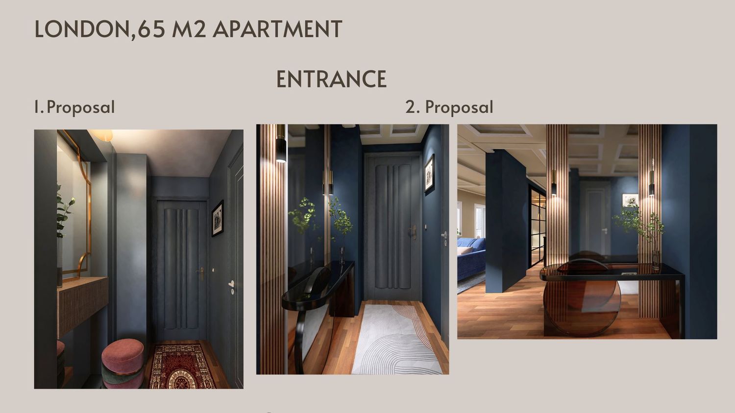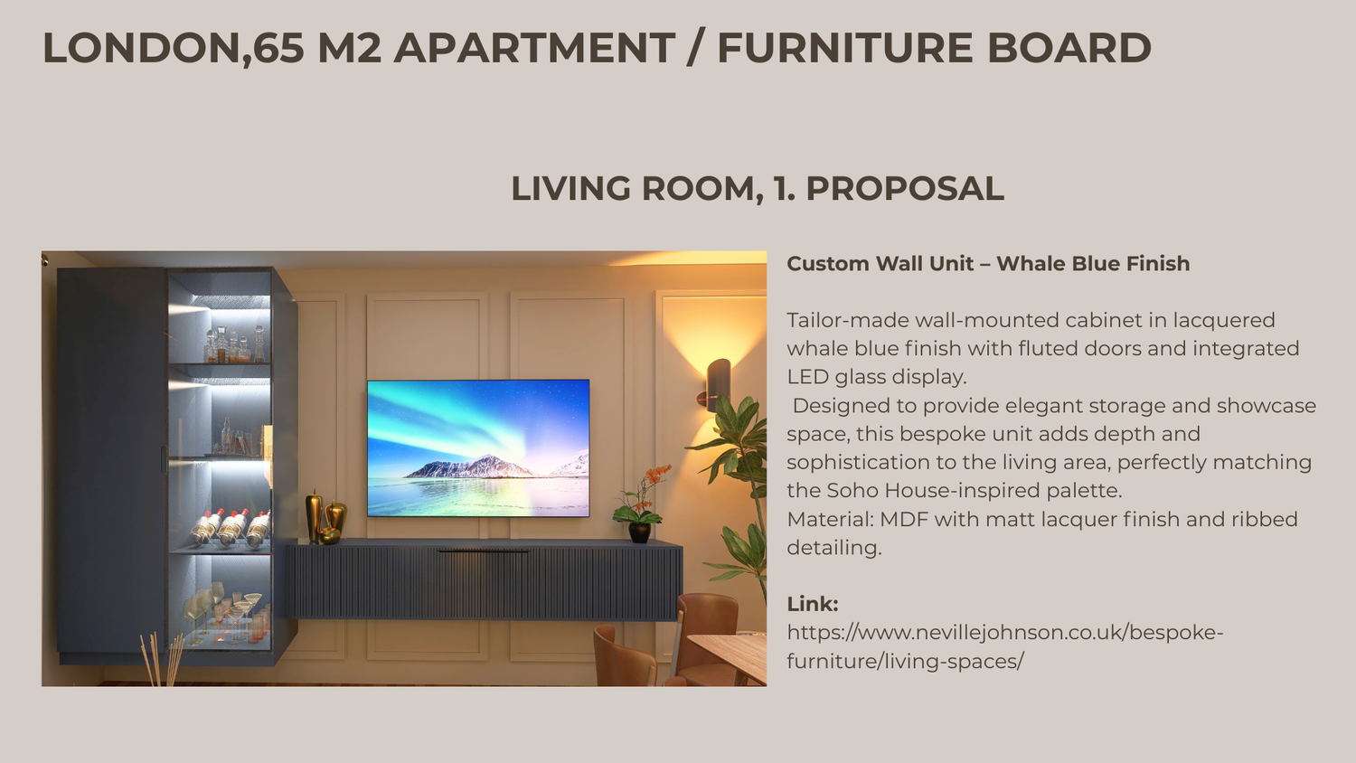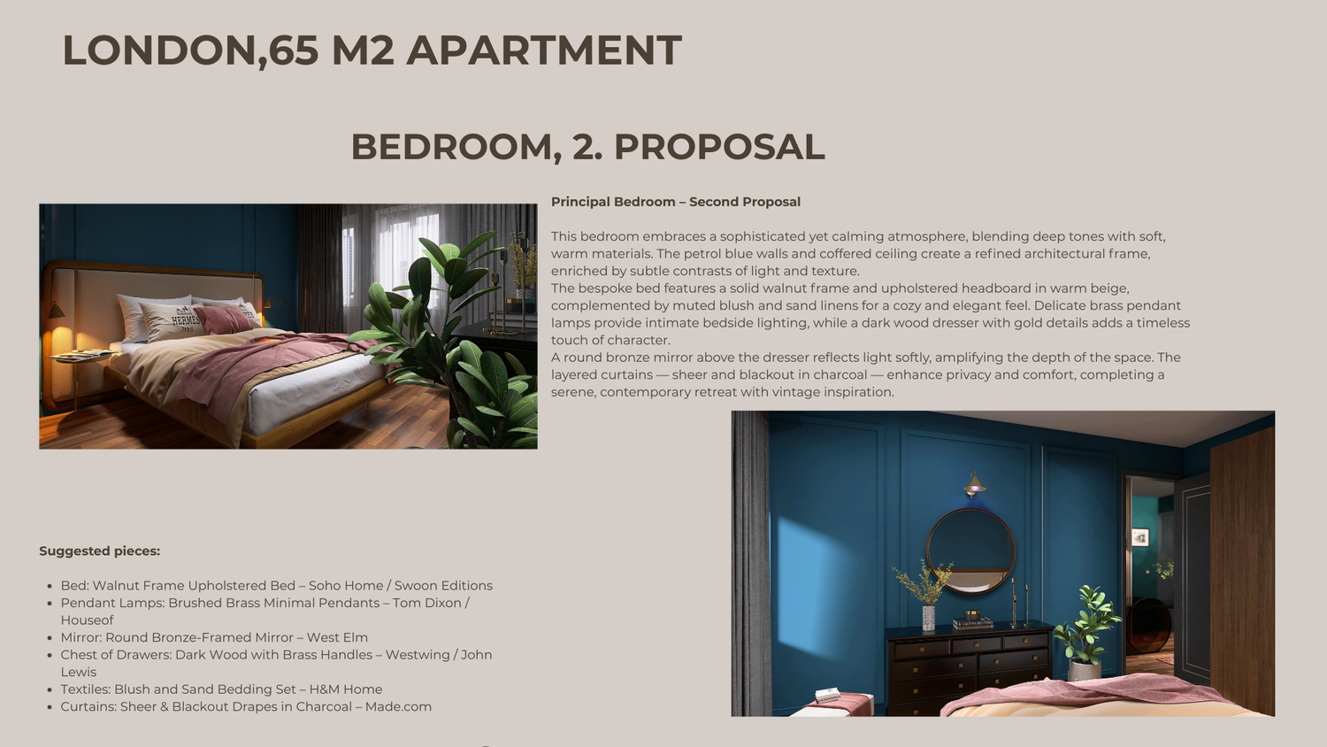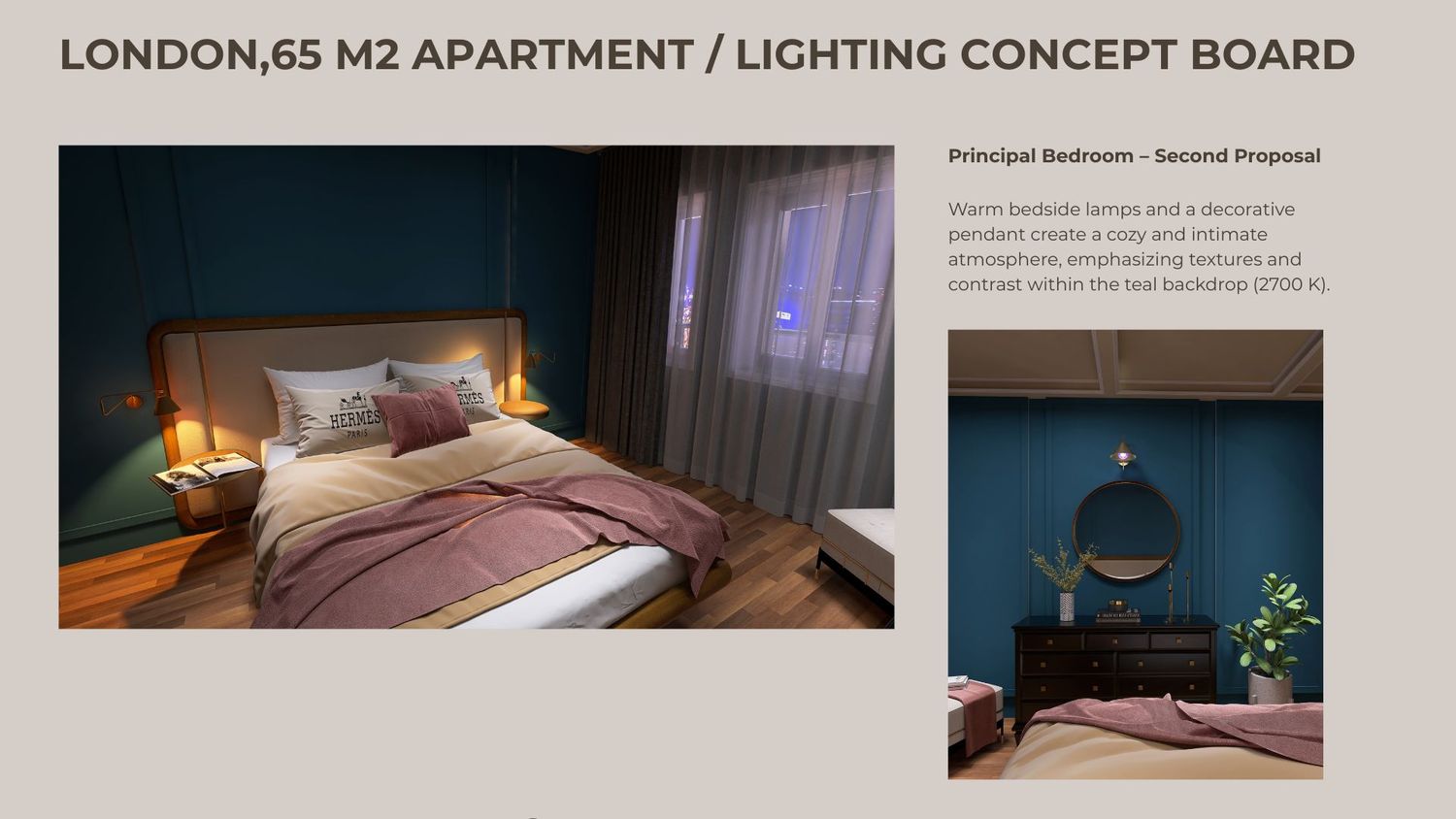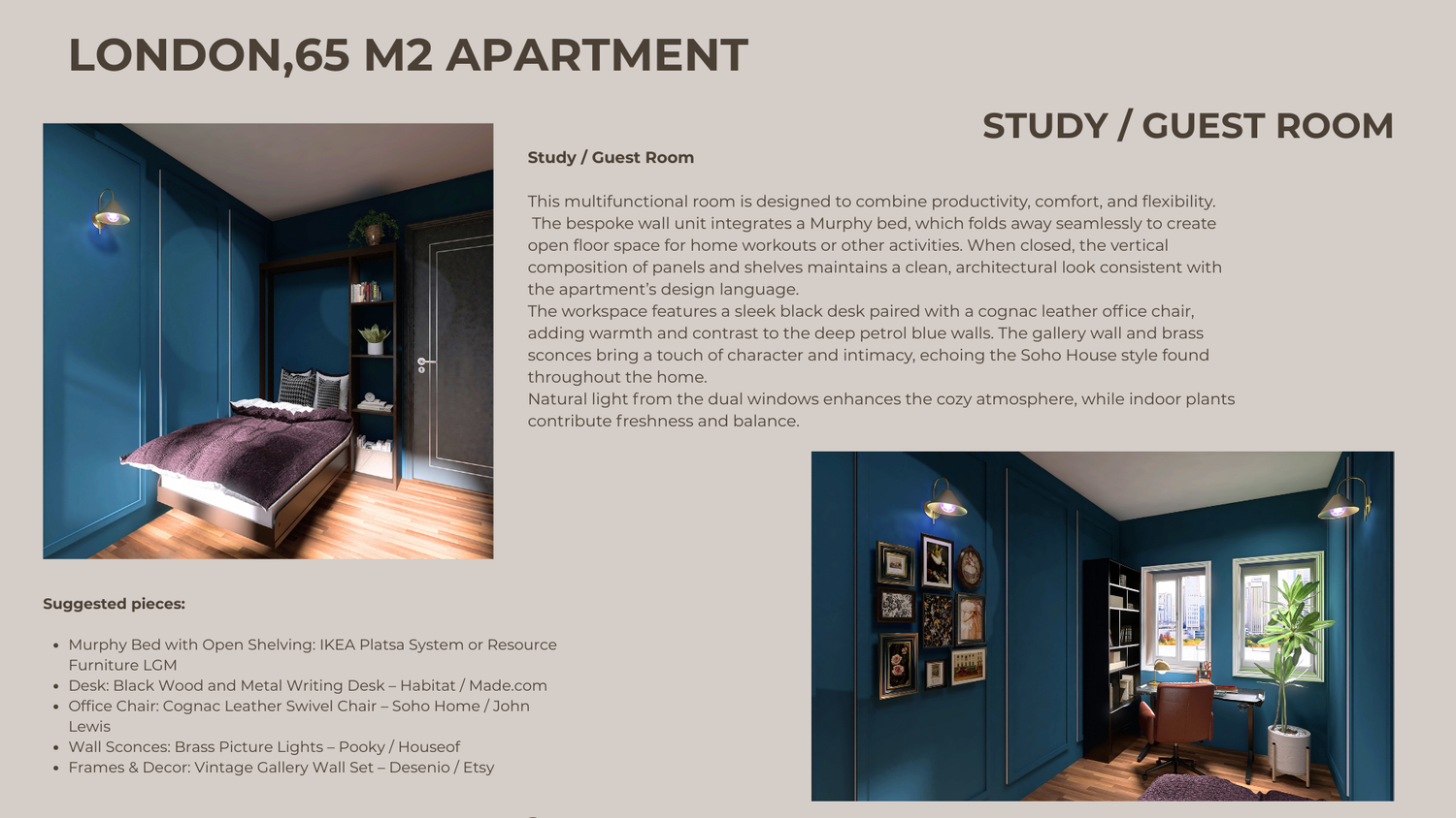 This project presents two alternative layouts developed to meet the client’s request for both functionality and spatial flexibility. Each design combines elegance and practicality within a Soho House–inspired atmosphere defined by warm tones, brass details, and layered lighting.