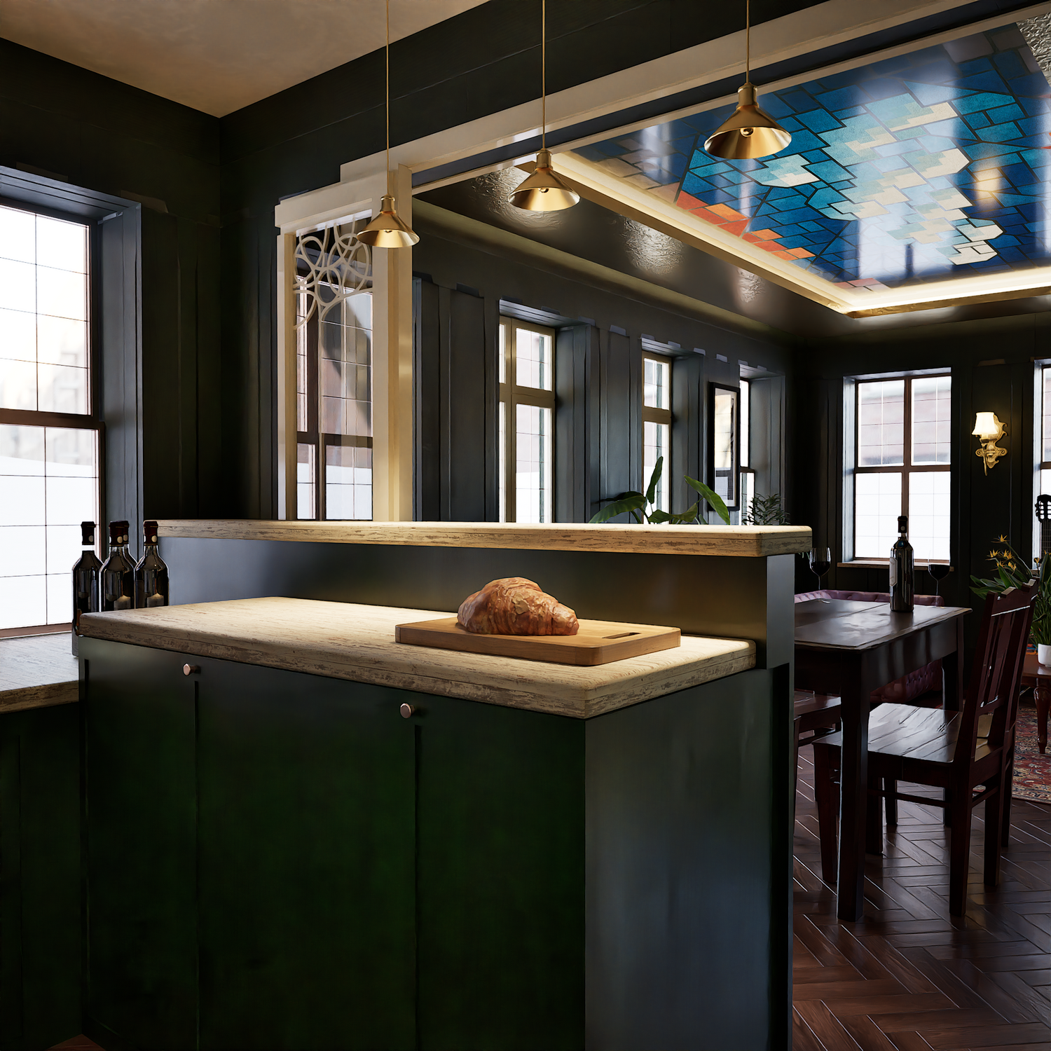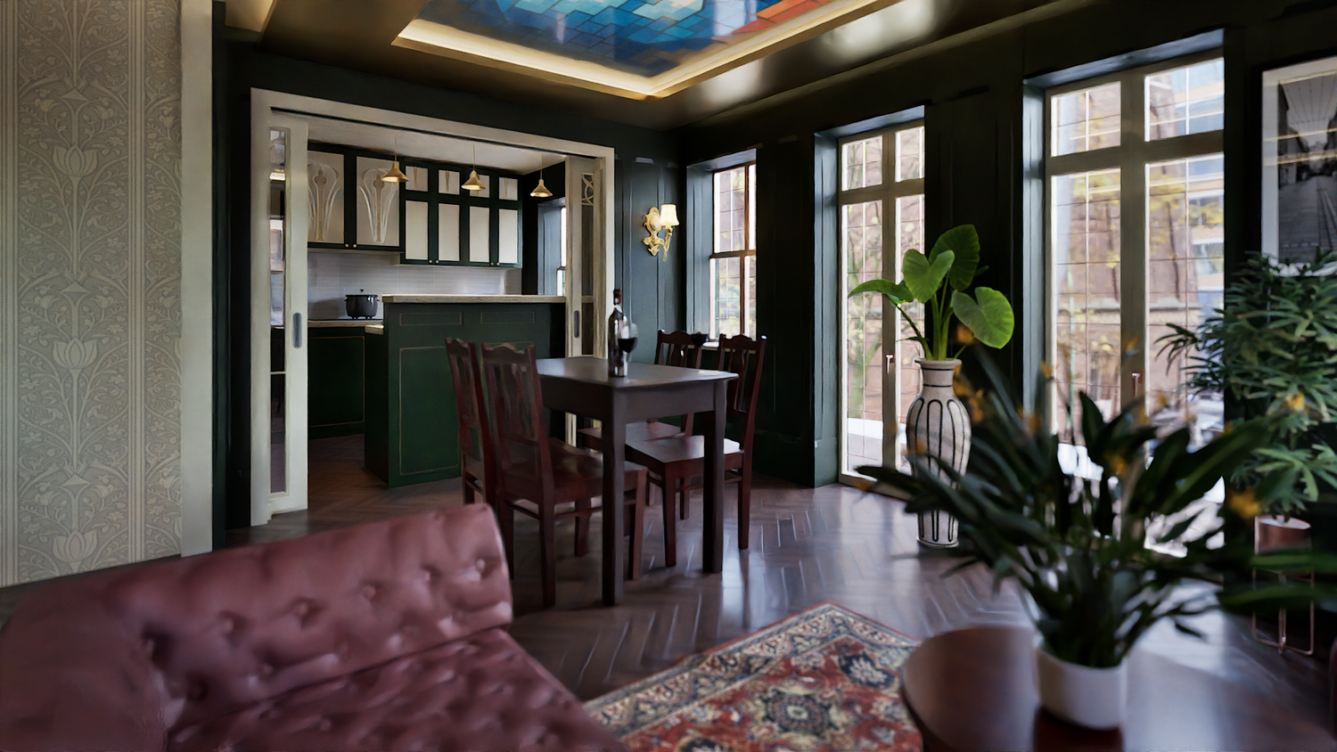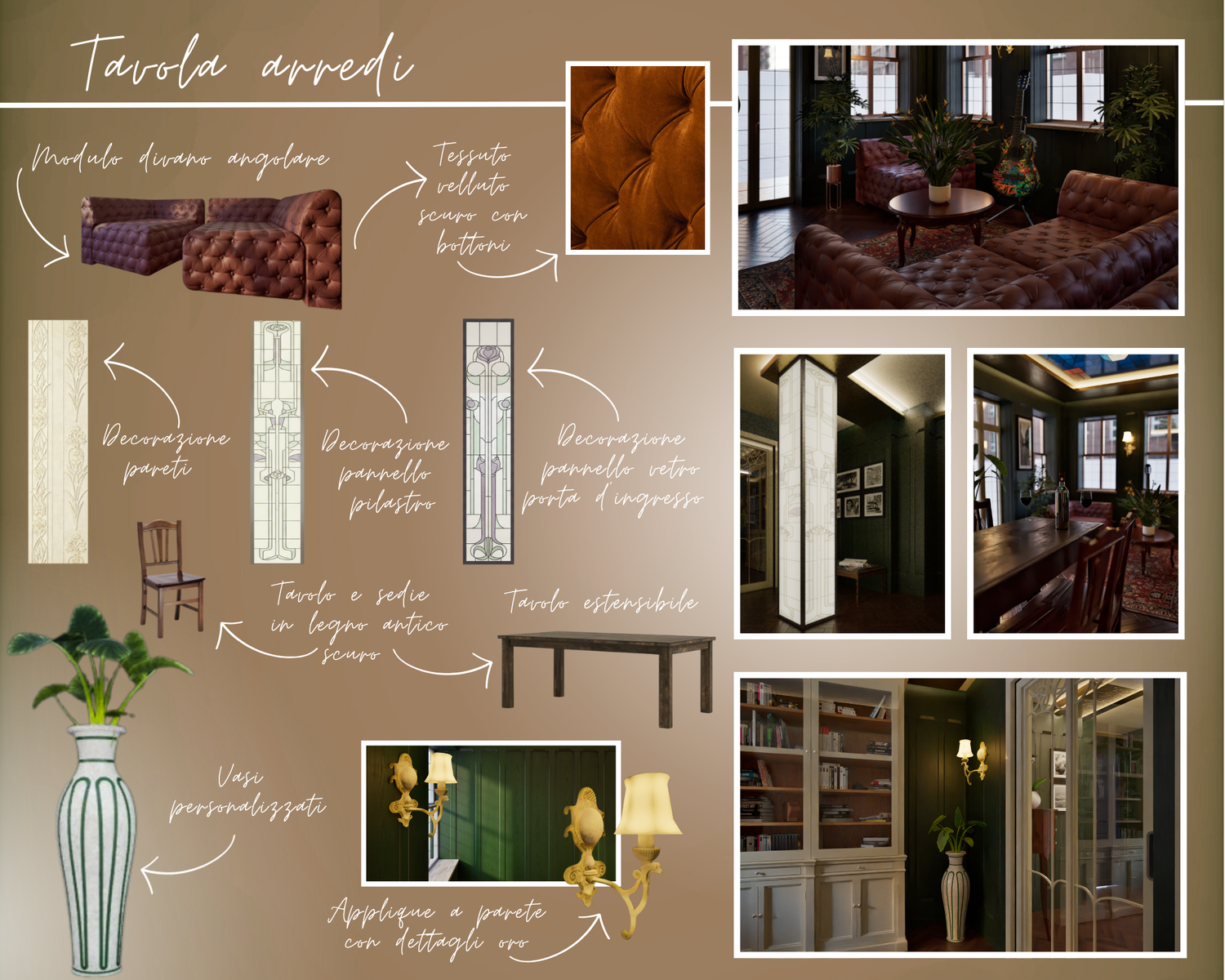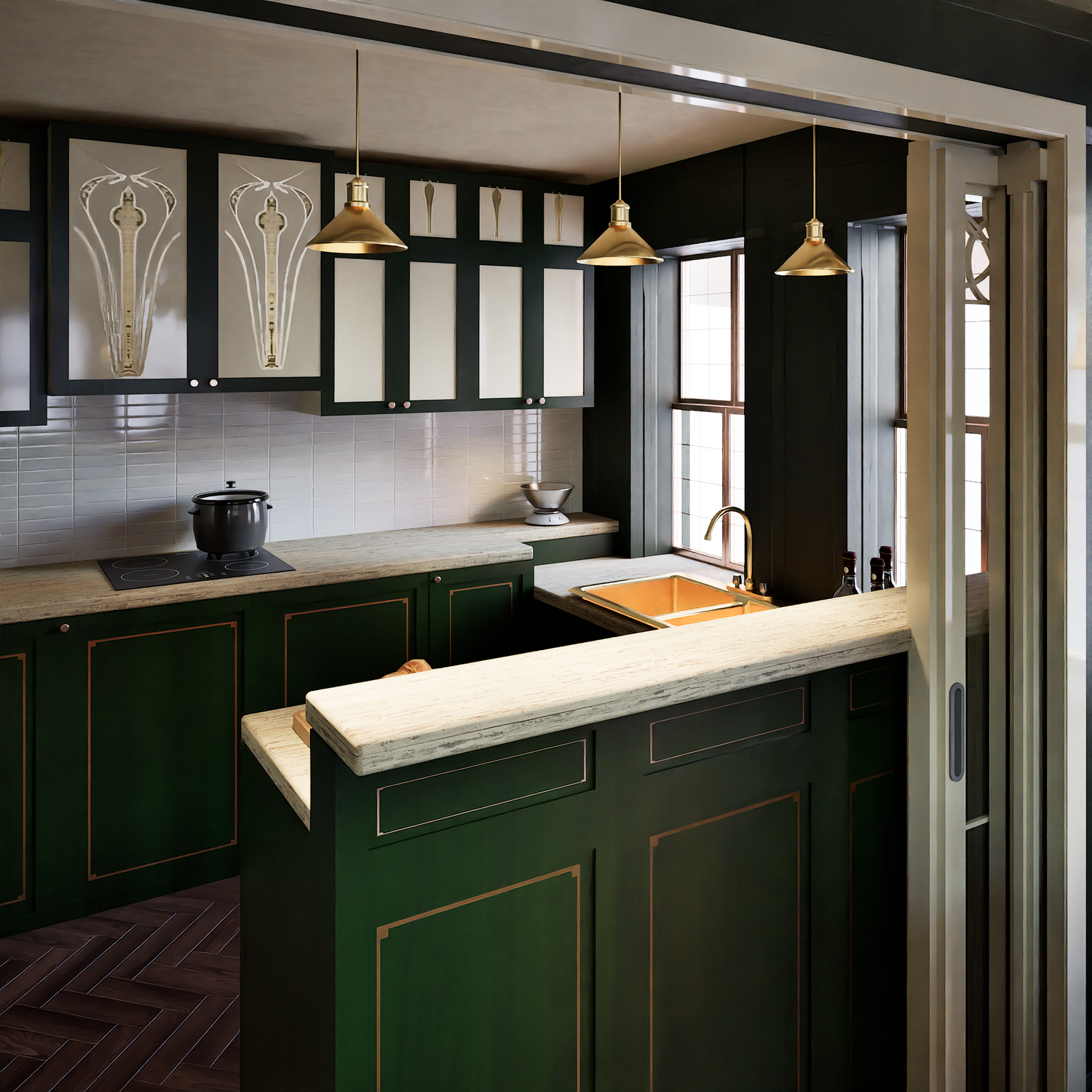 Questo progetto di ristrutturazione a Londra nasce dal desiderio del cliente di fondere eleganza storica e funzionalità contemporanea, ispirandosi agli stili Art Nouveau, Art Déco e all’atmosfera intima dei pub irlandesi. Attraverso una palette di colori profondi, arredi su misura e dettagli decorativi raffinati, l’appartamento è stato trasformato in uno spazio artistico, accogliente e versatile, capace di adattarsi con eleganza alla vita quotidiana e agli eventi conviviali. Su richiesta del cliente abbiamo sviluppato anche una planimetria senza demolizioni, mantenendo l'arredo come da progetto.