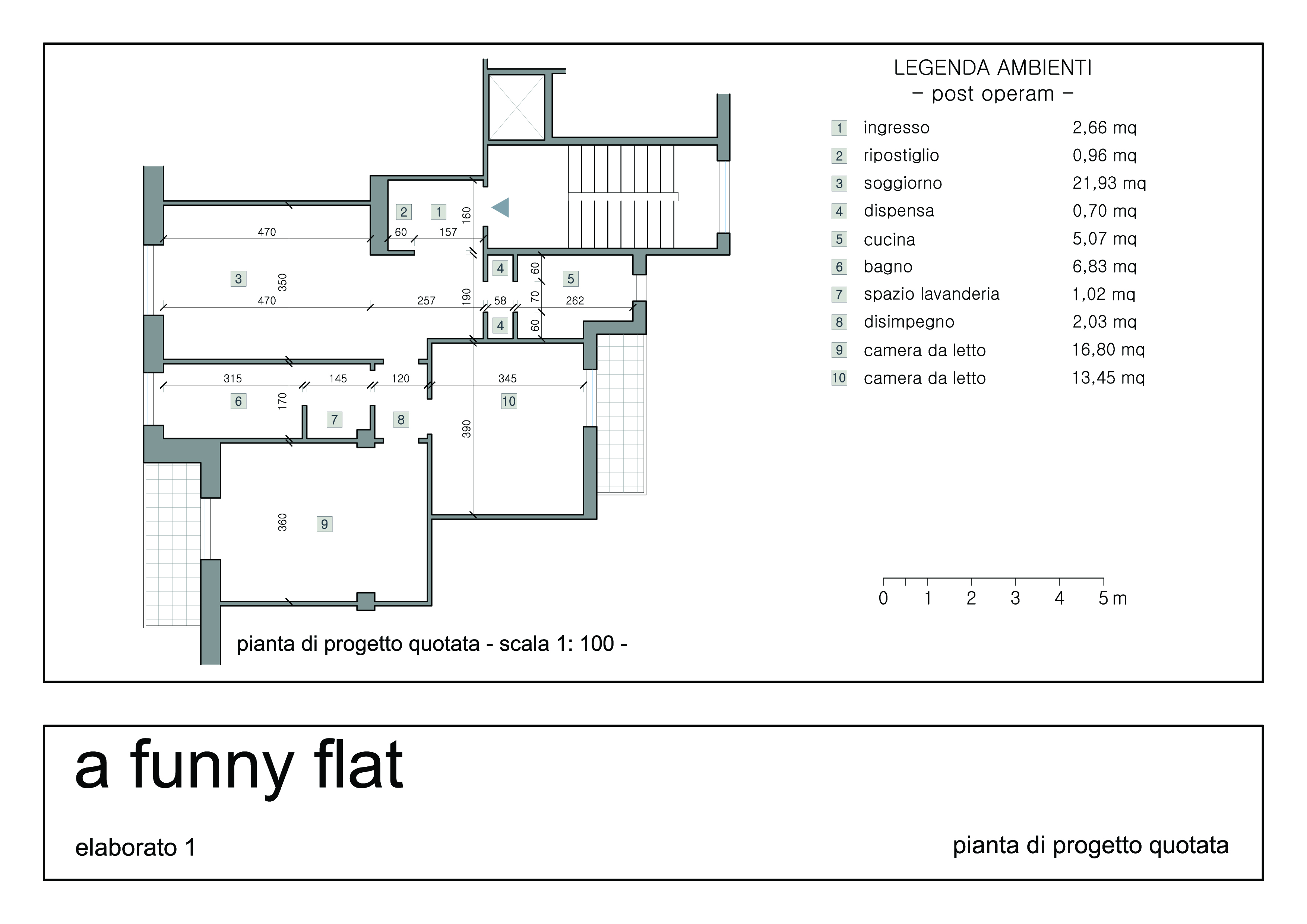 l'alloggio ha una pianta tipicamente anni 70, che vorrei sovvertire per dare più aria alla zona giorno, e non perdere inutili spazi in zone di passaggio (ingresso e corridoio). rimane l'esigenza di disporre di un ripostiglio. la zona notte ed il bagno non dovrebbero essere alterata nei muri, ma possono essere ridisegnate per quanto riguarda la disposizione dei mobili e lo stile.