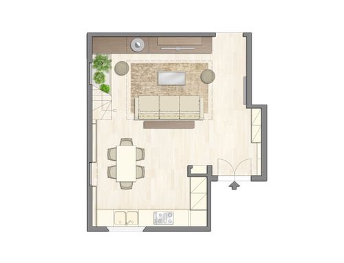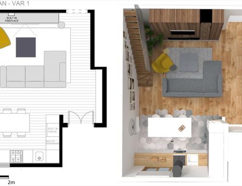 Our whishes it's renew the main room of our house. As you can see in the photos it's an open space around 40mq where is placed kitchen and living room. We cannot move staircase, and if you will want leave fireplace you can move but not so much, we would want change the actual image of fireplace. You have to be free to change everithing. when you will choice pieces of furniture we would want have information about price and vendor. You can also select supplier such as Ikea or meson du mond but you have to be free in your choice. Our budget is not more then 18.000 eur all included.