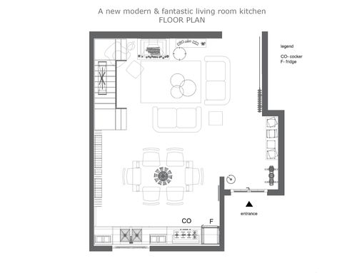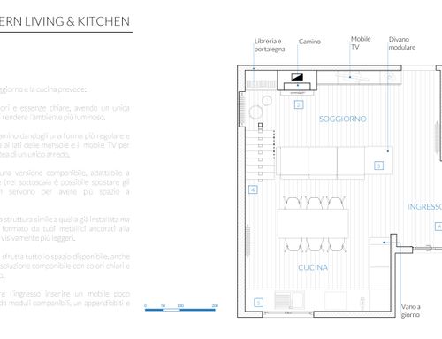 Vorremmo rinnovare la stanza principale di casa nostra, che è uno spazio aperto di circa 40mq che riunisce ingresso cucina e salotto. L'unico vincolo che poniamo è la posizione della scala, e nel caso decidiate di lasciare il camino la sua posizione può variare di poco, Il camino così come è ora non ci piace più, per il resto sentitevi liberi di cambiare tutto. Nel proporre i mobili non ci dispiacerebbe avere l'indicazione del fornitore ed il prezzo, potete scegliere anche Ikea o Meson du Monde ma sentitevi liberi di scegliere quello che riterrete opportuno. Il budget che abbiamo a disposizione è 18.000 euro tutto compreso.