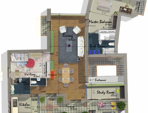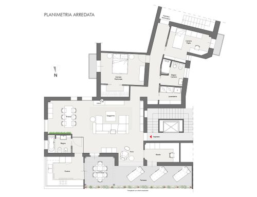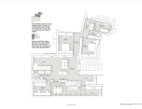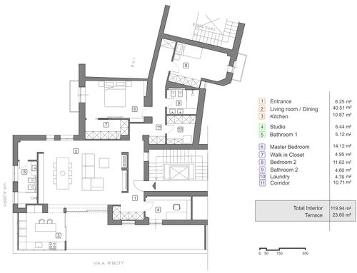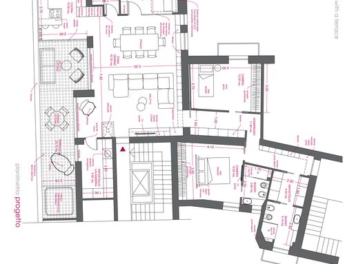 We are a family of 3, two adults and a 3 year old girl. We want to combine and redesign two apartments that are now separate, creating a single penthouse on the top floor. Today the two apartments (85m2 + 21m2 of open air terrace and 65m2 respectively) are divided by a wall that can be pulled down (wall “A” in the plan). We attach great importance to the kitchen, to the reception living area. We would also like to obtain a small study, a closet and insert a fireplace in the living room. We expect attention to details specifically in the redesign of the eastward zone (AS IS comprises two small bathrooms and a bedroom with a closet, we would like to obtain a larger bedroom and remove one of the bathrooms) From a stylistic and aesthetic point of view, in furnishings and finishes we love minimalist rationality but we do not exclude being surprised by more original approaches (for example art deco references, wallpapers). As for the terrace, it can be expanded by demolishing the current storage room and also the partition wall with the room on the veranda (today the child's room) can be converted into a glass door. On the terrace, being very sunny, an elegant semi-mobile cover can be used, well integrated with the style of the apartment (eg pergo-curtain with sliding glass).-Please note that scale on the plan is 1 cm: 100 cm--------------------------------------------------------Siamo una famiglia di 3, due adulti e una bimba di 3 anni. Vogliamo unire e riprogettare due appartamenti oggi separati, creando un'unica penthouse all'ultimo piano. Oggi i due appartamenti (85m2+21m2 di terrazzo e 65 mq rispettivamente) sono divisi da una parete che può essere abbattuta (muro “A” in planimetria). Annettiamo molta importanza alla cucina, alla zona living di rappresentanza. Vorremmo ricavare anche un piccolo studiolo, un ripostiglio e inserire un camino nel living. Dal punto di vista stilistico ed estetico, nell'arredamento e nelle finiture amiamo la razionalitĂ minimalista ma non escludiamo di lasciarci sorprendere da approcci piĂą originali (per esempio richiami art deco). Per quanto riguarda il terrazzo, esso può essere ampliato mediante l'abbattimento dell'attuale ripostiglio e anche la parete divisoria con la stanza in veranda, che oggi ospita la stanza della bimba, può essere convertita in porta a vetri. Sul terrazzo, essendo molto soleggiato, può servire una copertura semi-mobile elegante e ben integrata con lo stile dell'appartamento (esempio pergo-tenda con vetri scorrevoli).La scala della piantina è 1:100--------------------------------------------------------------------------------------------------------------Somos una familia de 3 personas, dos adultos y una niña de 3 años. Queremos combinar y rediseñar dos apartamentos que ahora están separados, creando un Ăşnico ático en la planta superior. Actualmente los dos apartamentos (85m2 + 21m2 de terraza al aire libre y 65m2 respectivamente) están divididos por una pared que se puede derribar (pared "A" en el plano). Damos mucha importancia a la cocina, a la zona de estar de la recepciĂłn. TambiĂ©n nos gustarĂa obtener un pequeño estudio, un armario e insertar una chimenea en la sala de estar. Esperamos que se preste atenciĂłn a los detalles especĂficamente en el rediseño de la zona este (tal como está comprende dos baños pequeños y un dormitorio con un armario, nos gustarĂa obtener un dormitorio más grande y eliminar uno de los baños) Desde un punto de vista estilĂstico y estĂ©tico, en el mobiliario y los acabados nos encanta la racionalidad minimalista, pero no excluimos dejarnos sorprender por enfoques más originales (por ejemplo, referencias art decĂł, paredes empapeladas). En cuanto a la terraza, se puede ampliar derribando el actual trastero y tambiĂ©n se puede convertir la pared divisoria con la habitaciĂłn de la veranda (ahora l'habitacion de la nina) en una puerta de cristal. En la terraza, al ser muy soleada, se puede utilizar una elegante cubierta semimĂłvil, bien integrada con el estilo del apartamento (por ejemplo, cortina de pergo con cristal deslizante).