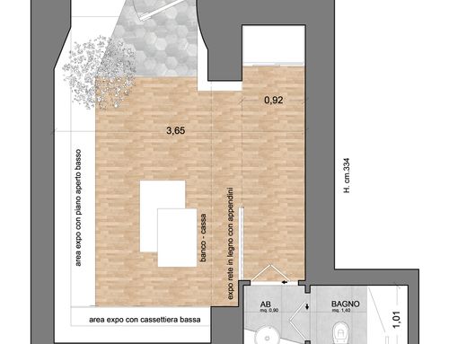 Quindi, in particolare, avrò bisogno di rendering dei negozi con le soluzioni di arredamento e alcune planimetrie