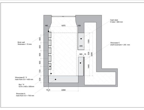 The store is super small, and that is the real challenge, to be able to make a POETIC store, were i can expose mainly the Wallets ,i was thinking like the walles of places were they sell smartphone covers and to have a small storage (see attached files)