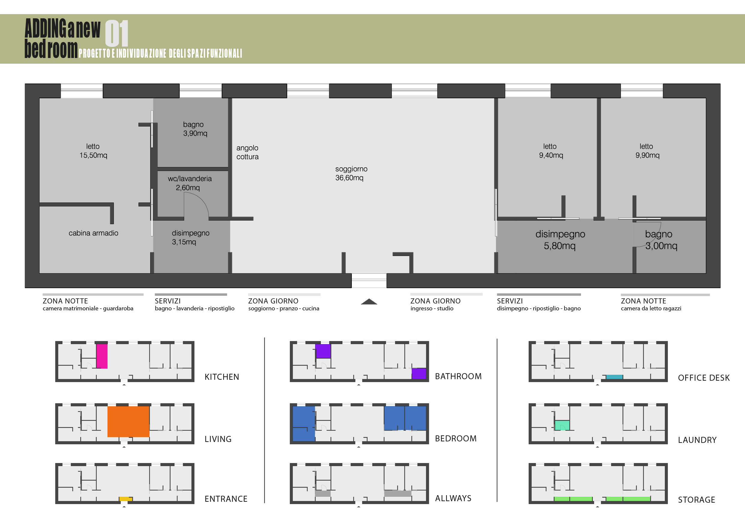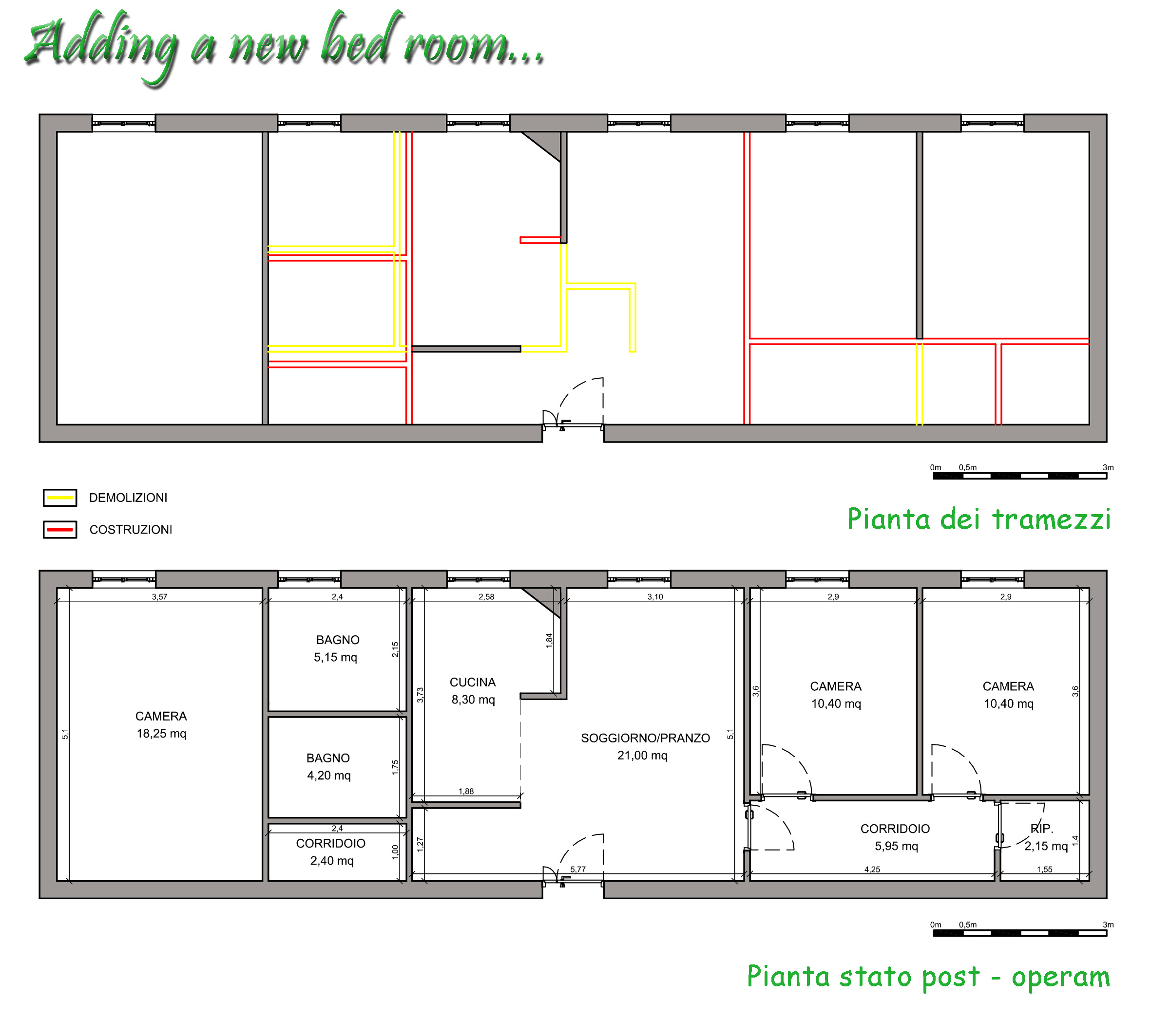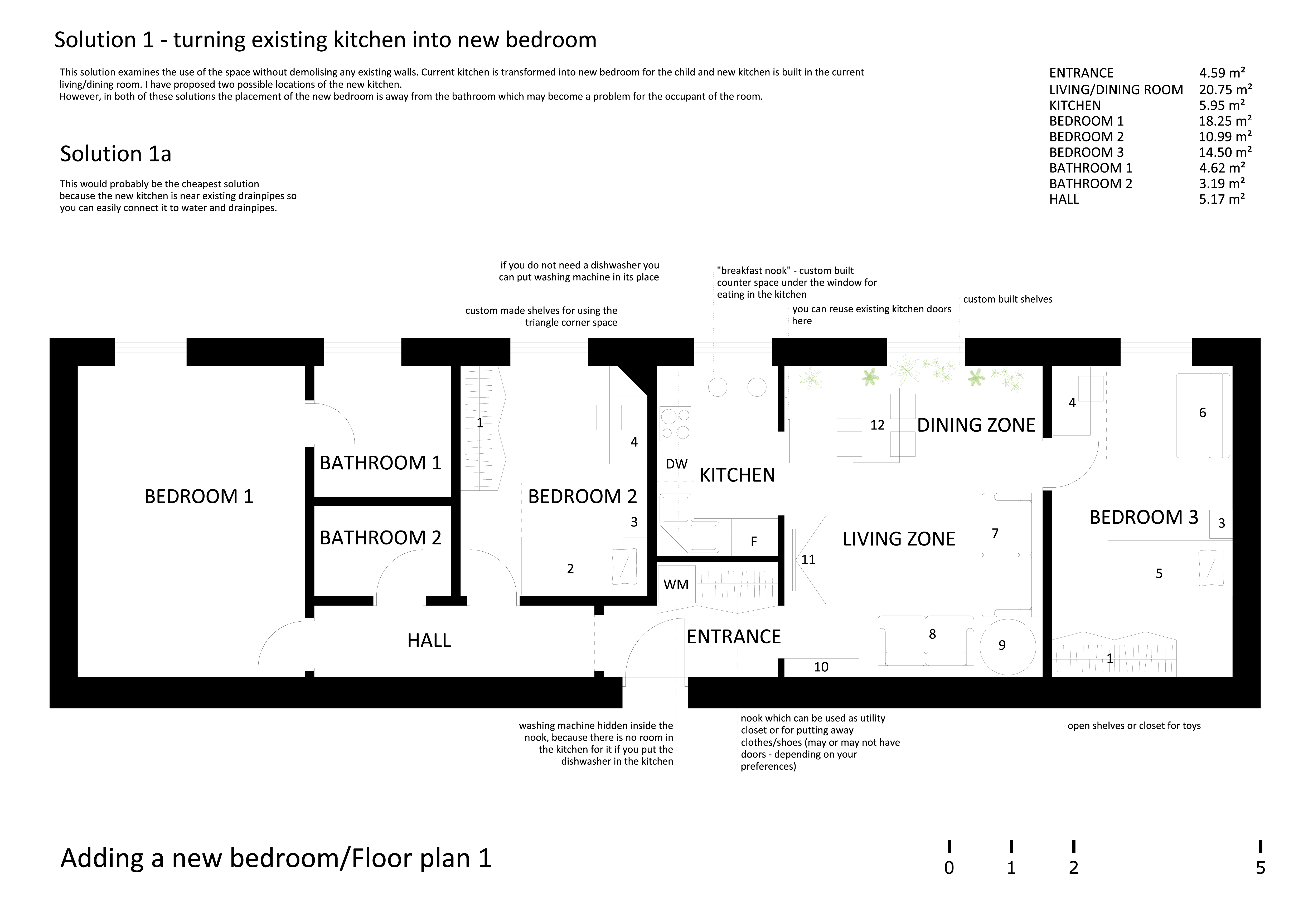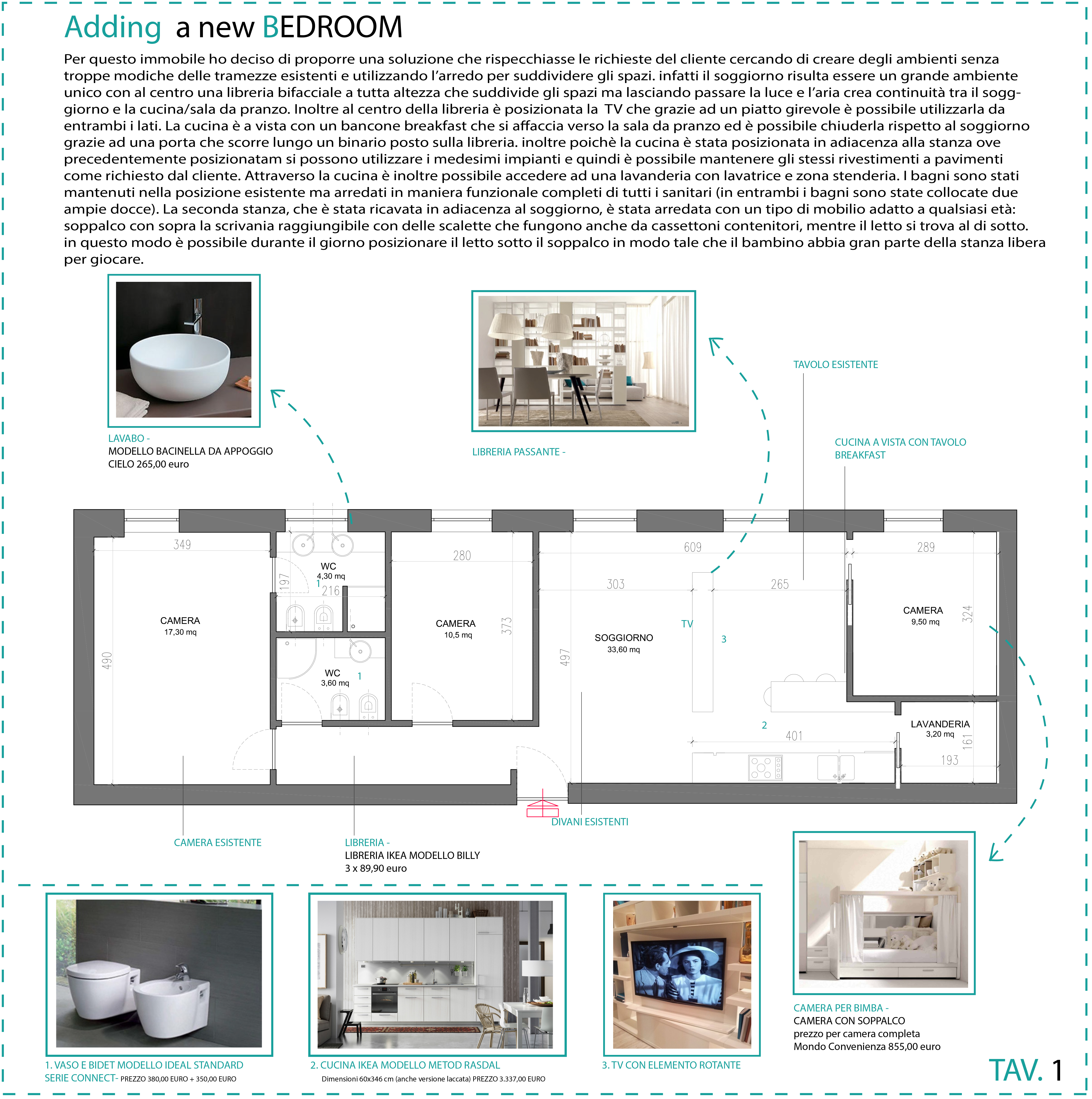 I would add a new bedroom for a child, creating an open kitchen in the living room or a small kitchen or any alternative feasible solution.