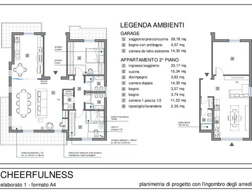 Per il garage ci piacerebbe creare un ambiente conviviale o mini appartamento per ospiti. È già presente quella che potrebbe diventare una camera, ma il bagno è poco funzionale perché attualmente non ha gli spazi per un box doccia. Sicuramente da aggiungere una cucina nella parete.