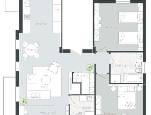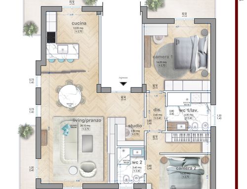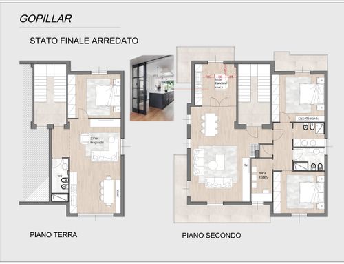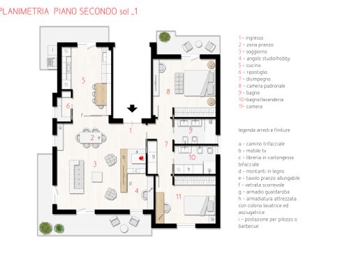 Vorremmo realizzare due camere matrimoniali (o una matrimoniale e una da una piazza e 1/2 per nostro figlio), due bagni (compresa di lavanderia) e sfruttare tutti gli spazi per poter riporre praticamente tutto (scarpe, cambio stagione..) e un piccolo spazio per hobby (mi dedico nel creare bigiotteria).