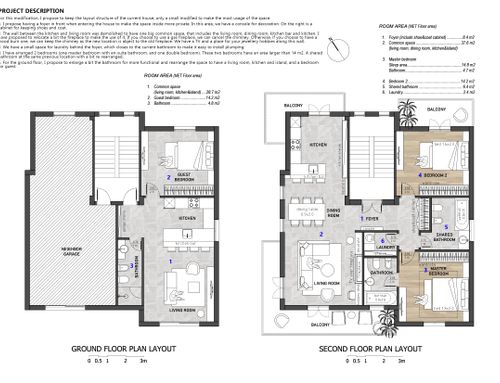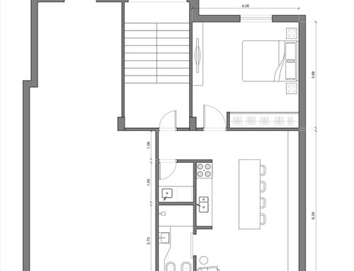 For the garage we would like to create a convivial environment or a mini-apartment for guests. There is already what could become a bedroom, but the bathroom is not very functional because it currently does not have the space for a shower cubicle. Definitely to add a kitchen.