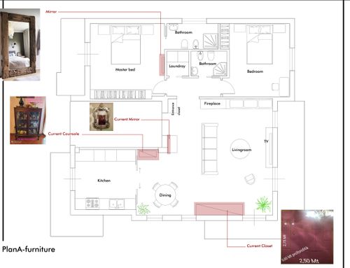 Currently the living area is underused also due to a bulky fireplace (not to be eliminated but to be reduced) and the second bathroom which takes up a lot of square footage in what is the living area.