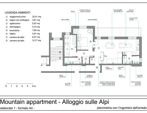 2 bagni (entrambi con doccia ed uno finestrato), 2 camere da letto (una matrimoniale ed una per i due ragazzi, da valutare anche possibilità di letto a castello se non troppo scomodo).