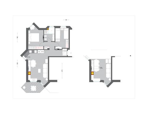 - El apartamento colinda con un pequeño monoambiente al lado, incorporado entre el salón y el pasillo. Es concebible que en el futuro también pueda comprar esta propiedad y luego ampliar el apartamento con una habitación extra. No sé si tiene algún sentido mencionar esto para proporcionar una puerta adicional para acceder a otro apartamento.