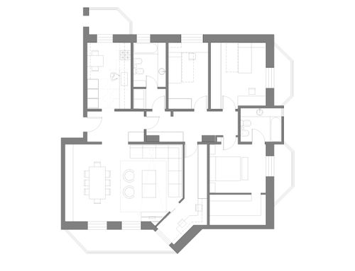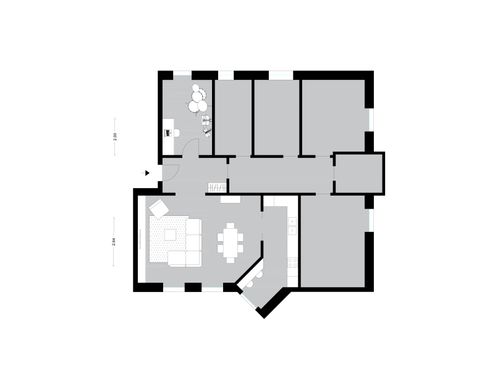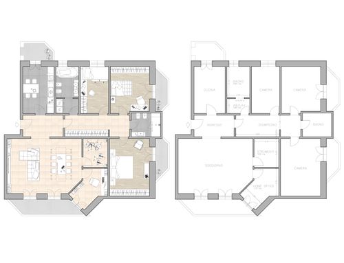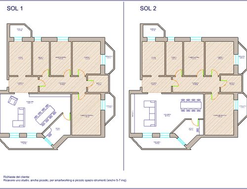 Rinnovamento parziale, senza ridistribuzione, ma con l'esigenza di ricavare uno studio, anche piccolo, per smartworking e piccolo spazio strumenti (anche 5-7 mq).