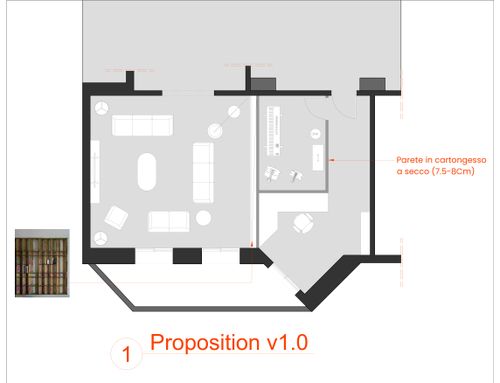 Nei documenti trovate anche planimetria quotata ed una prima ipotesi ricevuta per ricavare lo studio (da considerarsi solo una suggestione).