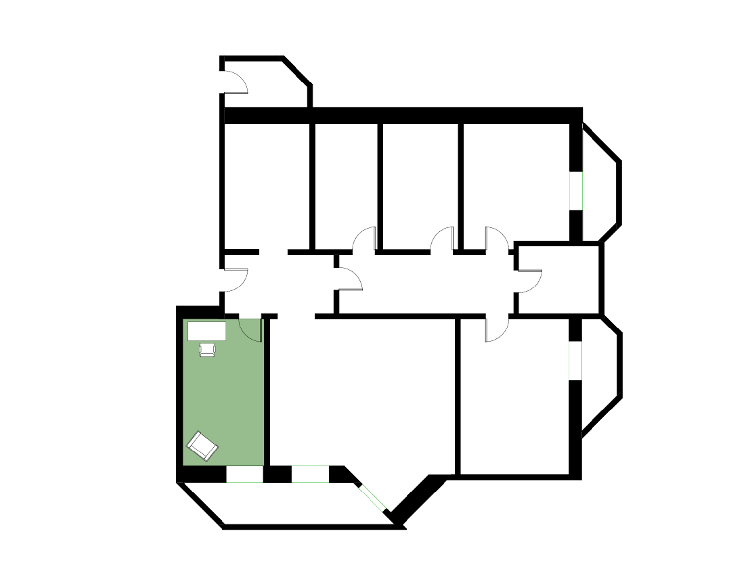 The green area is the new space in your home, which can be utilized without the need to alter the walls or the flooring. With just a simple wall, you will be able to create this new, functional area.