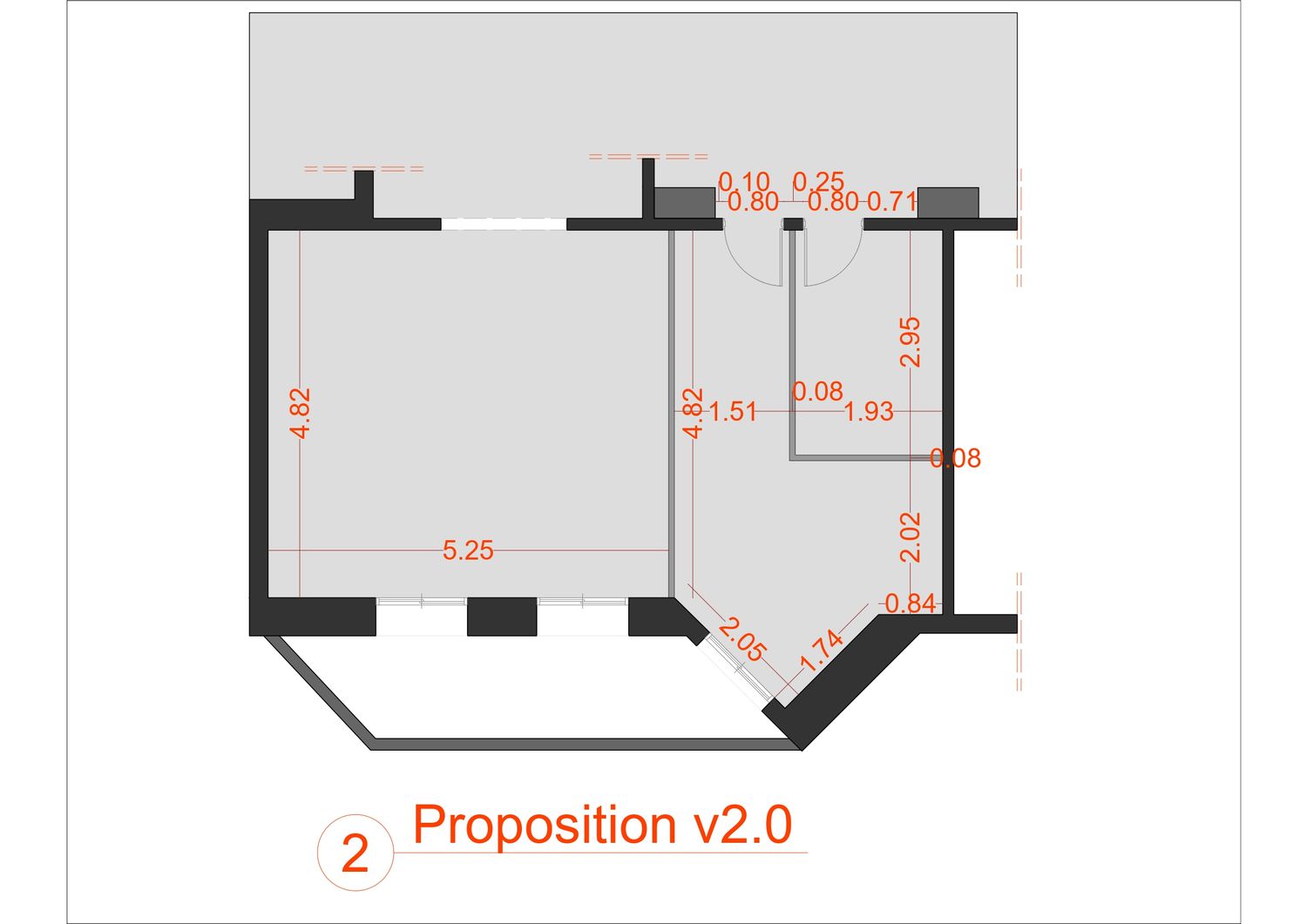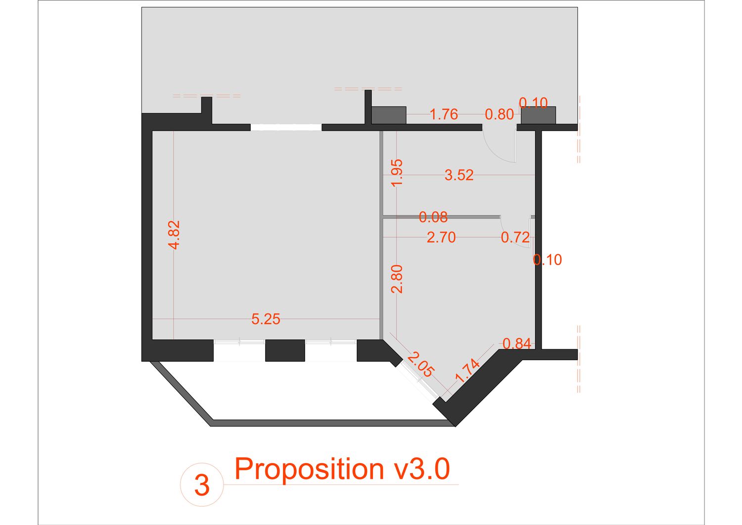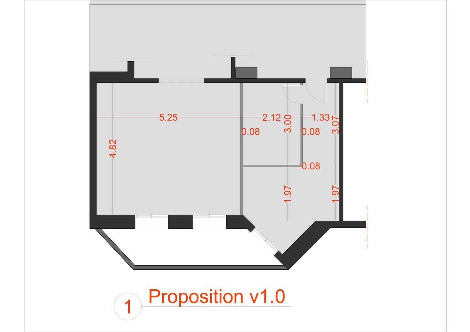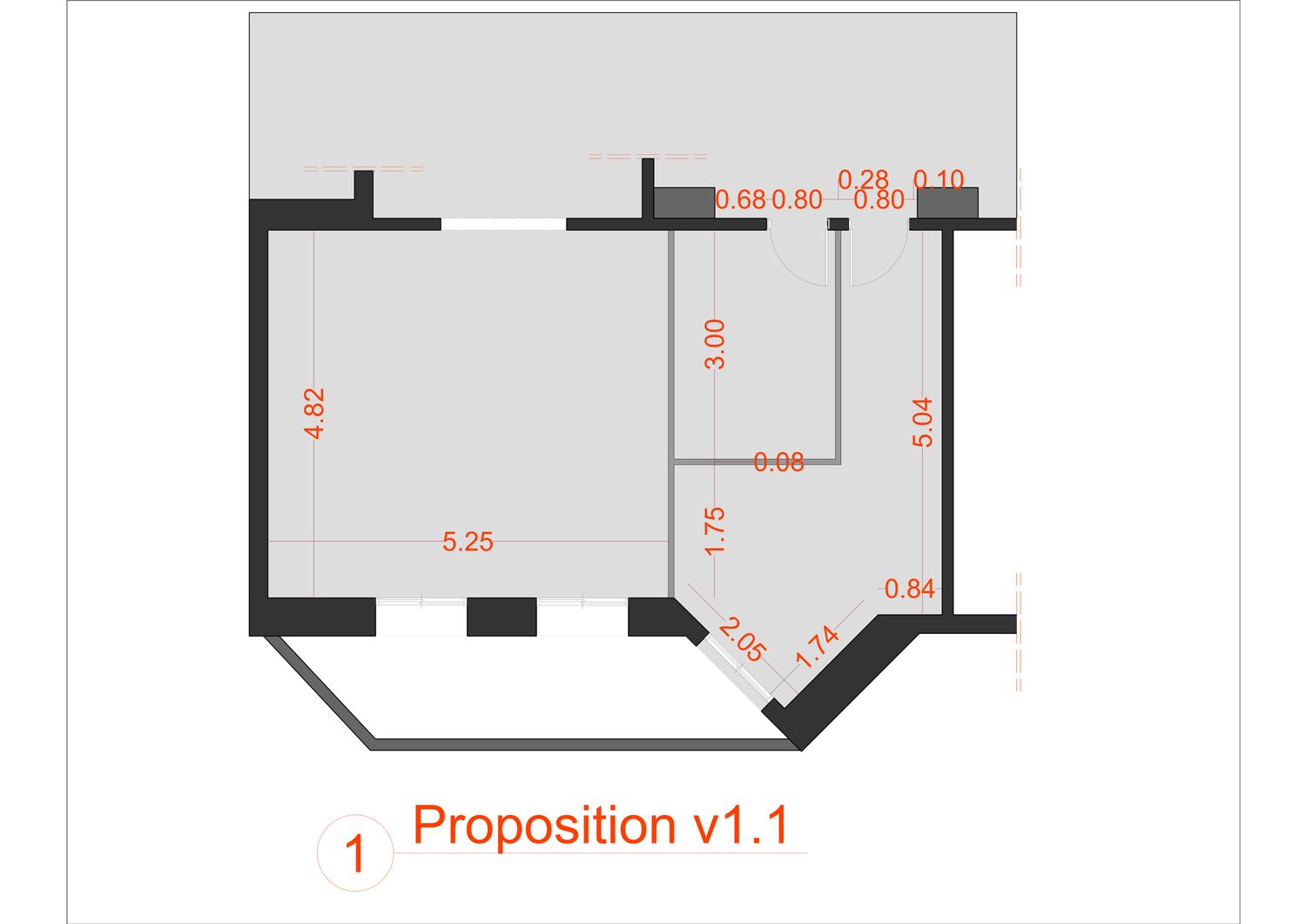For the design, since it was not possible to demolish the wall or the building, we used a gypsum board wall (7.5–8 cm thickness). This solution allows us to keep the existing parquet without changes, maintain the same materials, and ensures that the partition can be easily removed in future projects without leaving any trace in the building. With this wall thickness, it is also possible to install a door, making the design fully feasible.