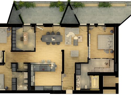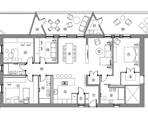 I would like to create a single cooking / dining / living room peninsula with sofa. (I would like to render this living area)