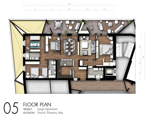 For the furnishings of the dining area I would like a robust and elegant furniture with a large table for dining with friends (also extendable). I would also like a sideboard or piece of furniture to store dishes and tableware.