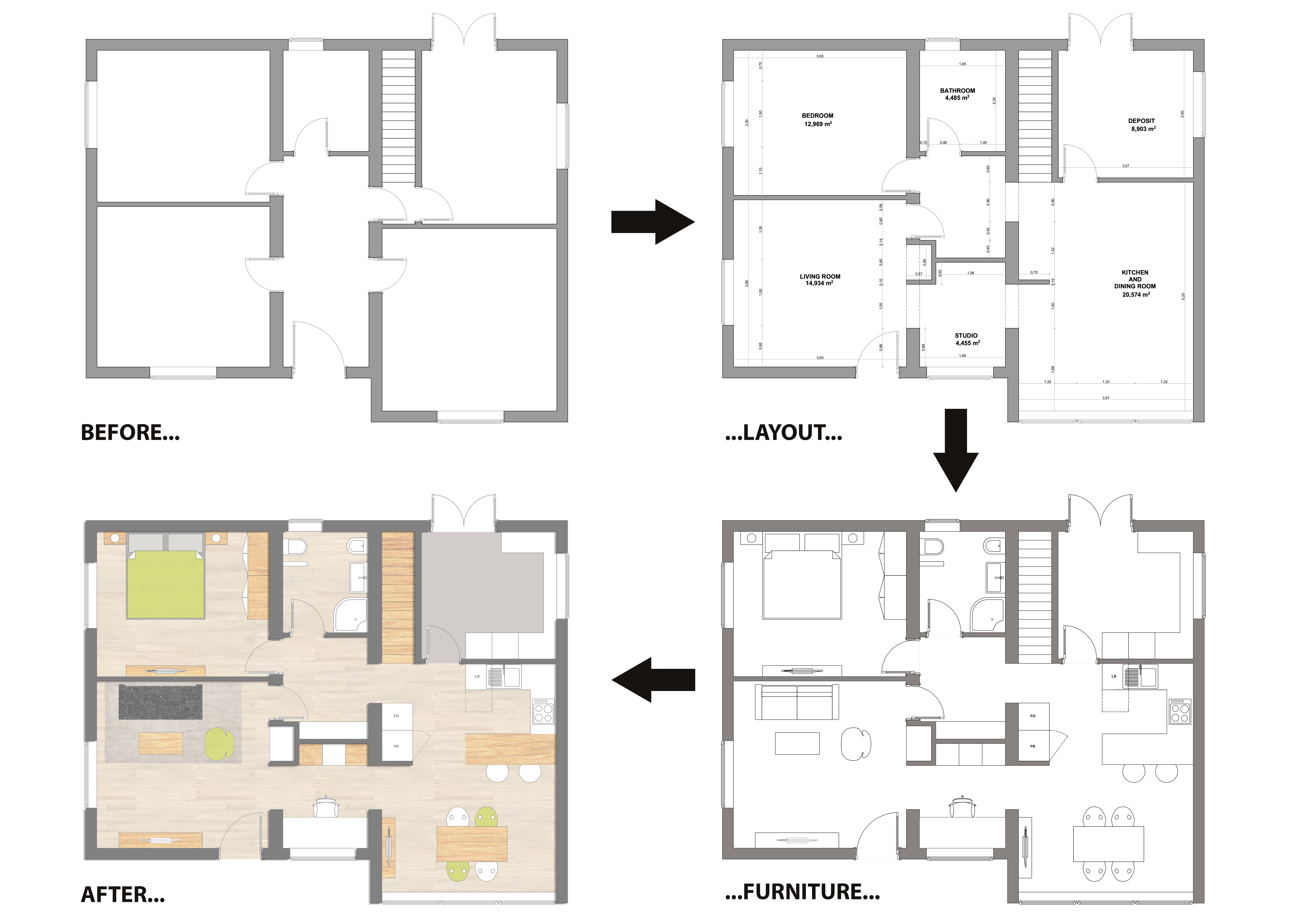 Un aspetto molto importante è che il mio budget è non è molto elevato, quindi ok ad aperture dei muri portanti, ma non tali da richiedere il rifacimento delle fondamenta, plinti, etc..