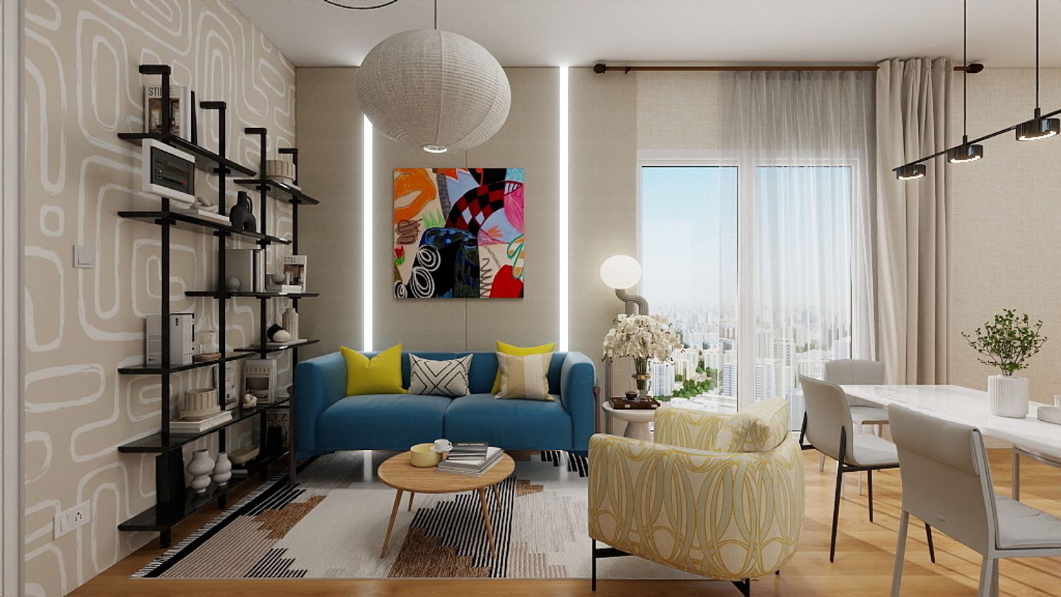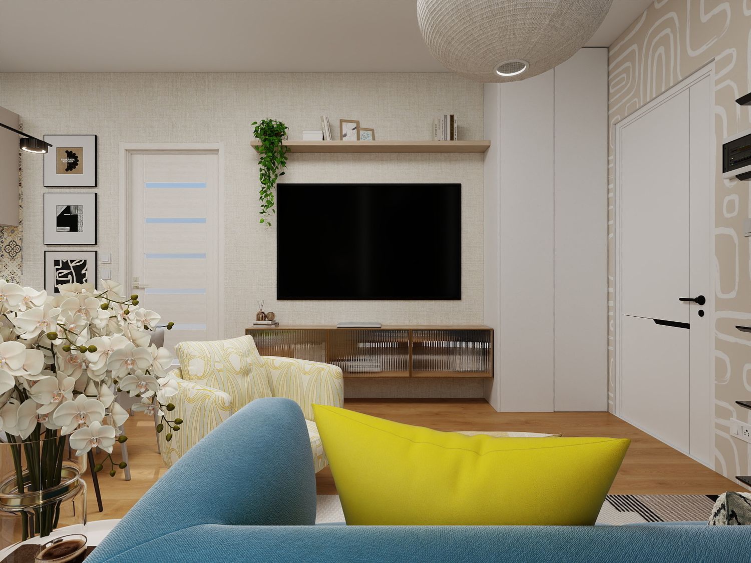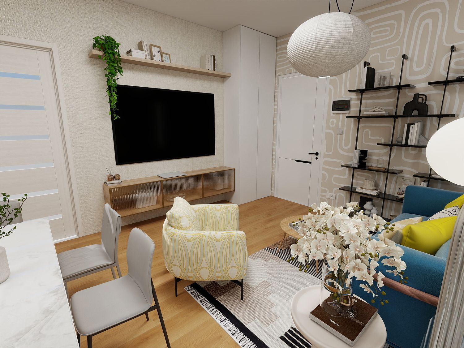 Overall, my goal for the space was to create a modern interior that is colorful, stylish, and comfortable, while maintaining harmony between the materials, furniture, and decorative elements.