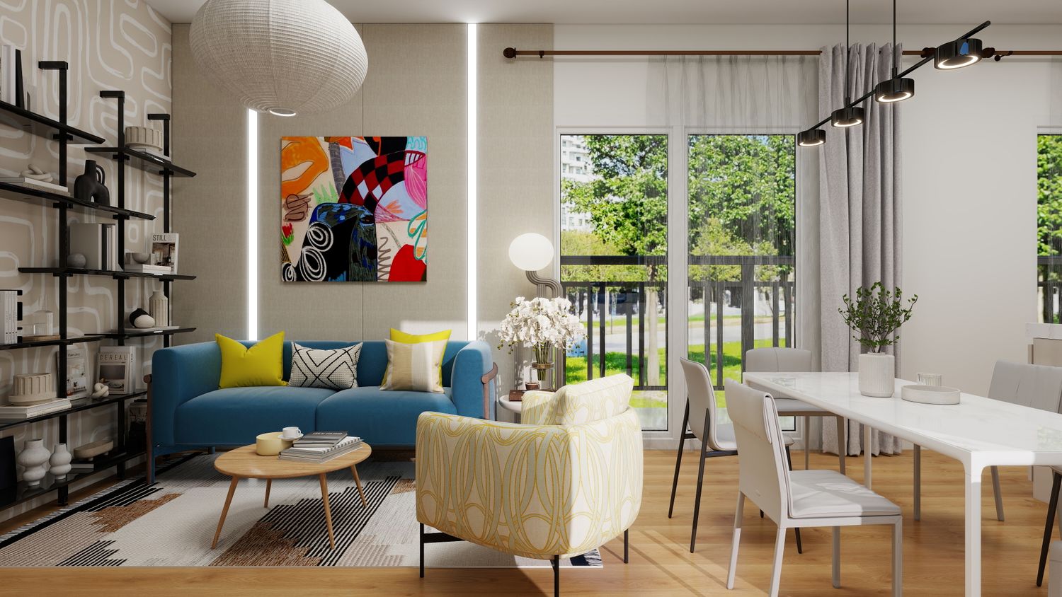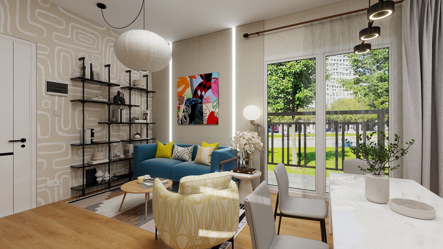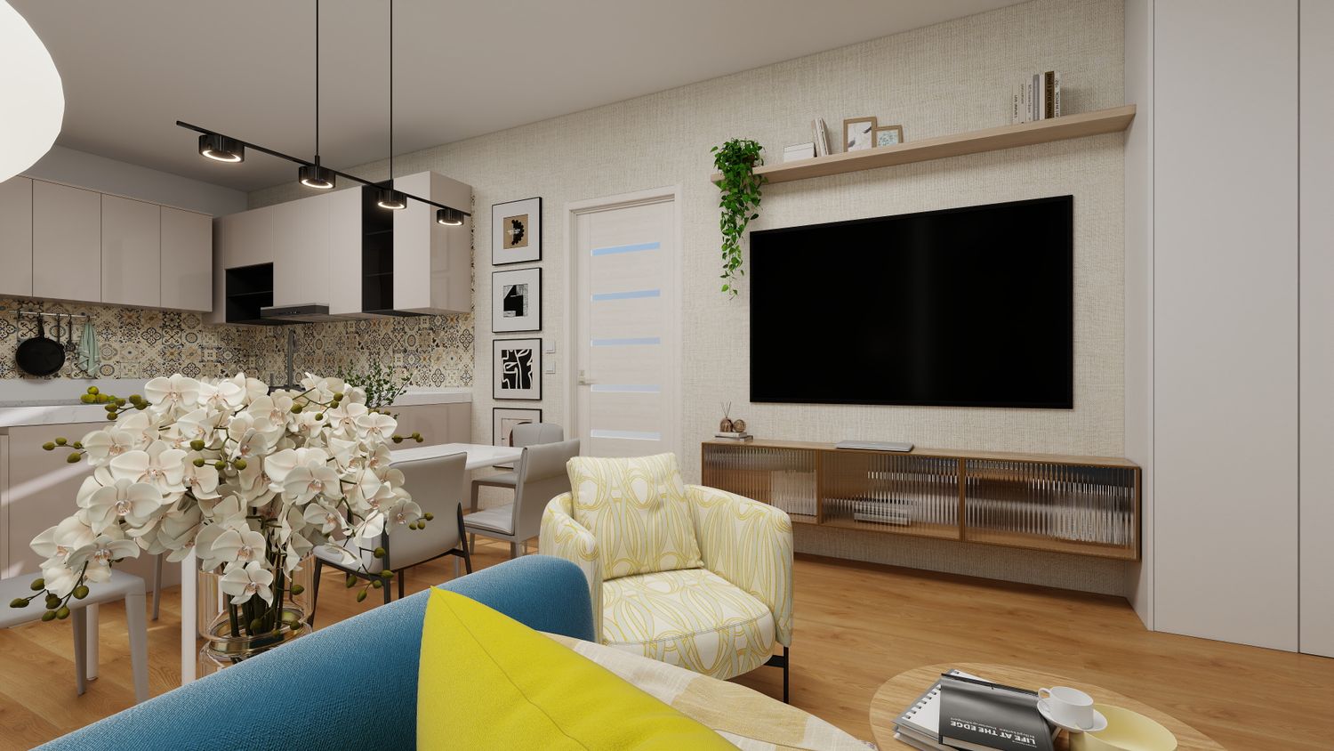 Overall, my goal for the space was to create a modern interior that is colorful, stylish, and comfortable, while maintaining harmony between the materials, furniture, and decorative elements.