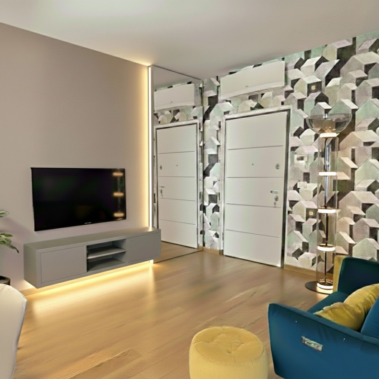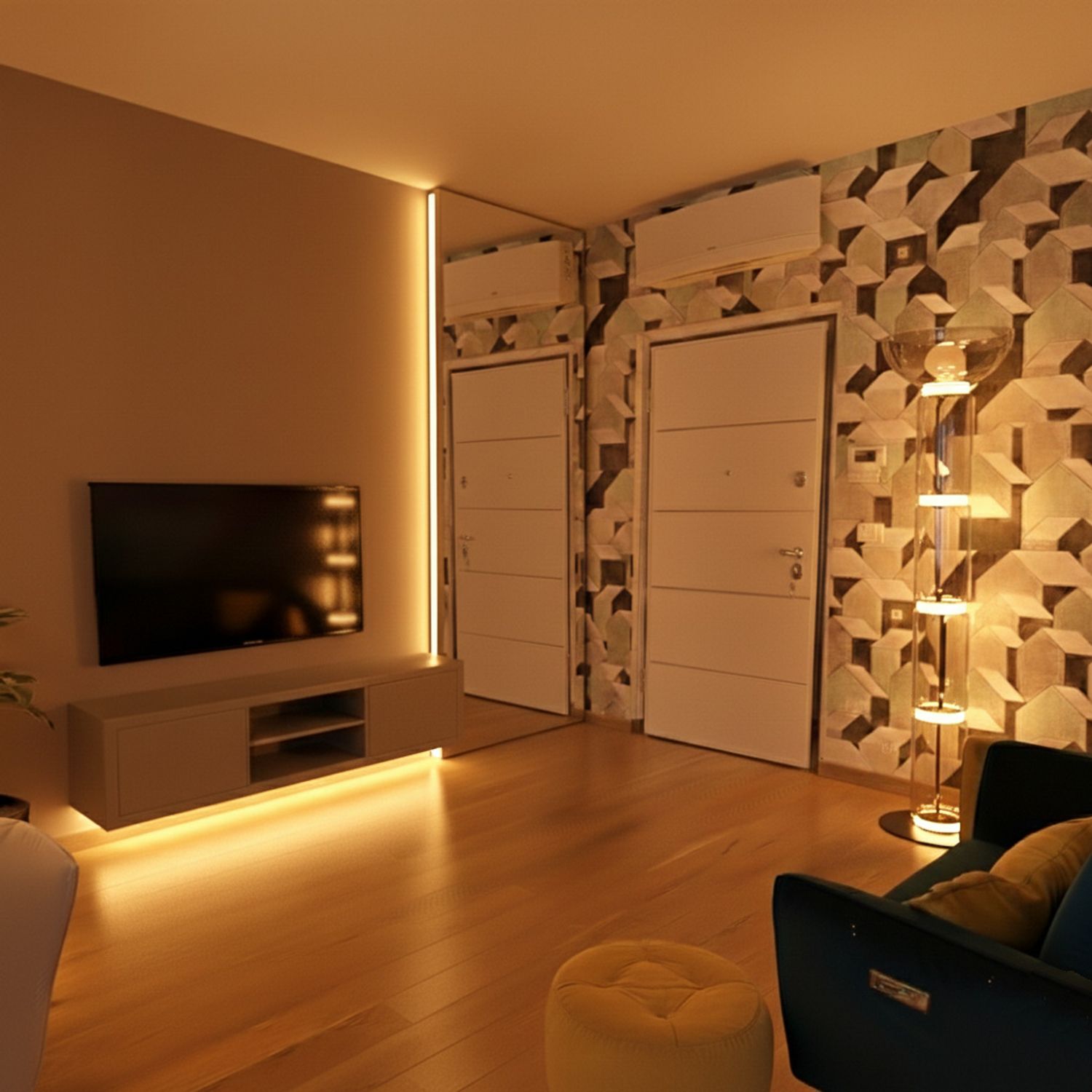 Abbiamo elaborato una soluzione che sostituisce i cubi IKEA con un design più maturo e integrato, risolvendo anche i suoi dubbi sui colori e sulla gestione tecnica della zona TV. Il mobile è stato pensato con una profondità di circa 40-45 cm, ideale per ospitare comodamente la sua consolle (42x33 cm) in appoggio o in un vano tecnico aerato. La struttura copre interamente le prese a muro, eliminando il disordine dei cavi.