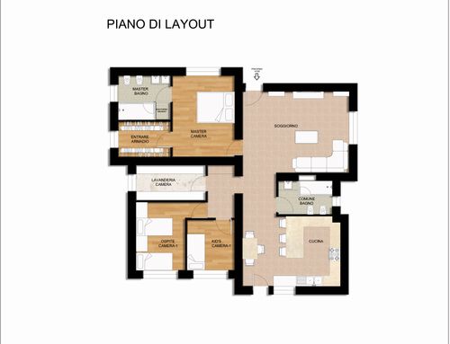 The style of our home must be classic contemporary. The kitchen must be bright and spacious, angular with kappa in the corner and with the central island made of rough gress material with the spacious table top plus a small 2-seater table I would have thought of eating on the table when you don't want to use the island, must communicate with the progress room which will be with the wooden roof and 2 closed walls and a large window plus the entrance door, must play a game of soft lights and plasterboard games and spotlights also in the kitchen and bedroom bed ... in the forward room we want to create a wall with a TV set all in polished stones that gives a particular optical effect, the large corner sofa plus the table that can be connected in the kitchen and a guest bathroom with 3 raised steps corner. the ironing room must have sticks to send hot air to dry linen plus a cabinet and a shirt or trouser hanger. Then make 2 small rooms one by one designed to put a computer and a desk and tomorrow a bed and a locker then a guest room and near a small bathroom only for the small rooms. Then make a nice large bathroom with 2 sinks and a large mirror with stone shower and soft lighting and create a very welcoming environment. The bedroom do with soft lighting and plasterboard very optical effect plus very spacious walk-in closet with mirror inside then in our bedroom create a bathroom just for us and also calculate the space for a cot the next day. Then in the ironing room create a balcony to connect behind the house and go outside where there will be a canopy and enter as a second entrance with the car when it rains. Next make a nice garden with a canopy and put sofas and tables for the summer.! As definitions we prefer something that goes well with the beige floor of each room we choose ... we attach photos of floors and structure as we would like it made! Our baget is around 30,000 euros.